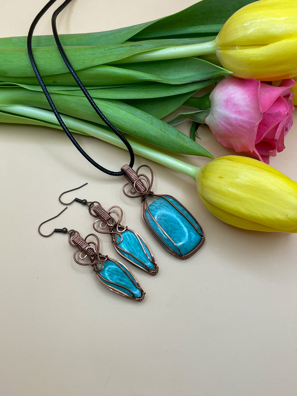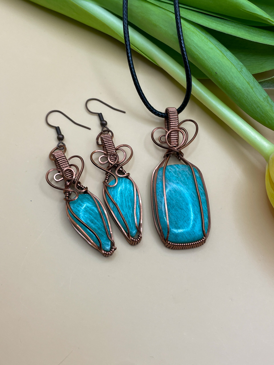 Velikost kamene (včetně drátku): přívěsek 2,3x5,8x0,6 cm; náušnice 1,3x4,6x0,5cm.