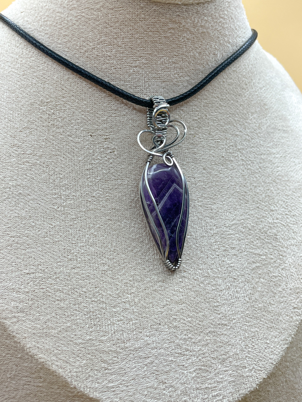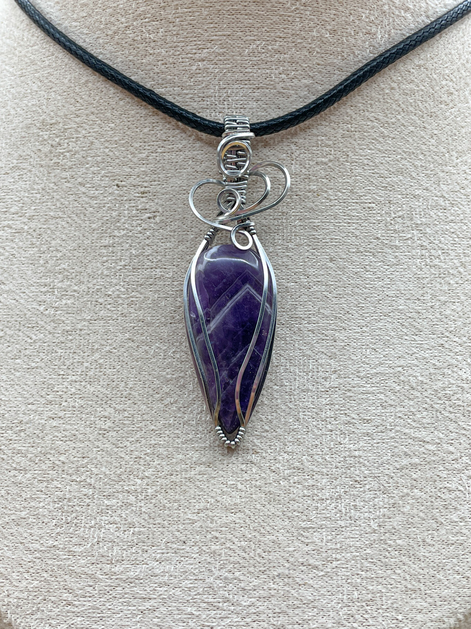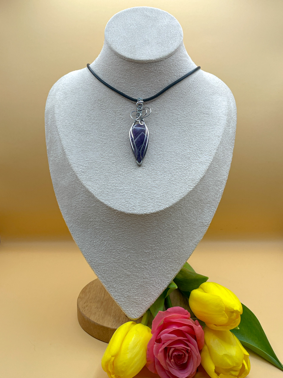 Velikost kamene včetně drátku: 1,7x6,1x0,7cm. Přívěsek bude na voskované černé šňůrce dlouhé 45cm.