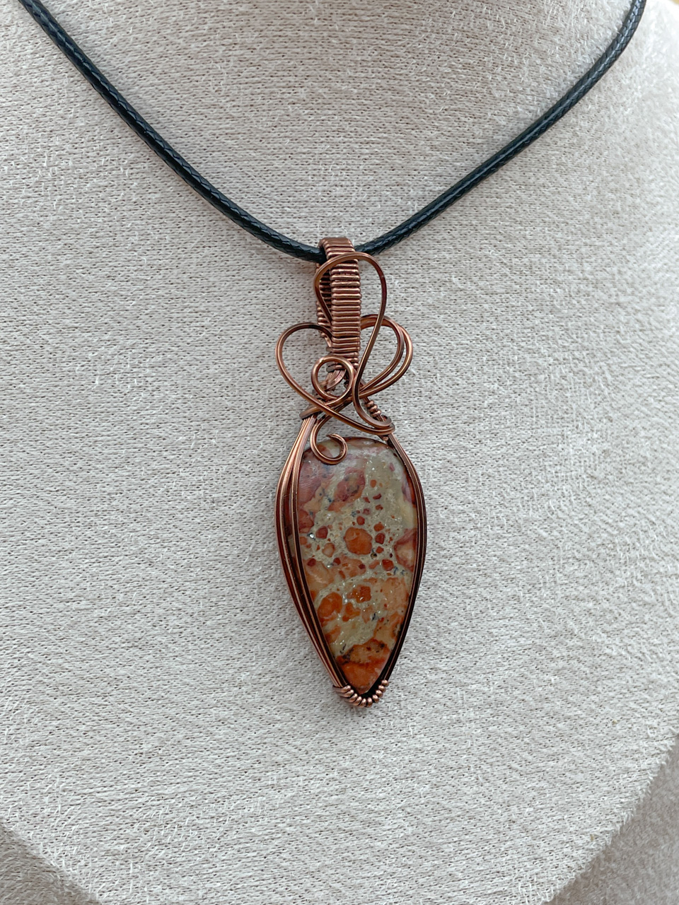 Velikost kamene, včetně drátku: 2,1x6,7x0,6 cm. Přívěsek bude na voskované černé šňůrce.