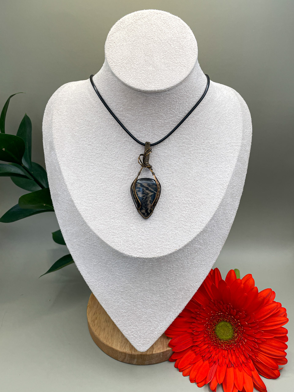 Velikost kamene včetně drátku: 2,6x6,5x1 cm. Přívěsek bude na voskované černé šňůrce.