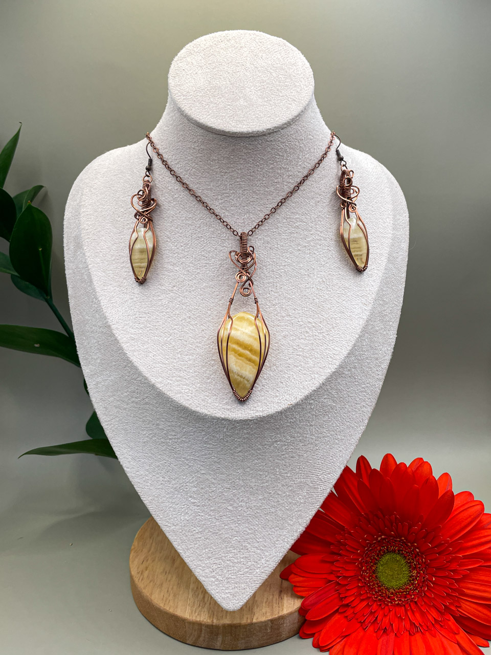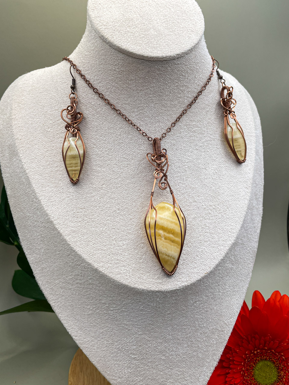 Velikost kamene včetně drátku: přívěsek 2,5x8,2x0,9 cm; náušnice 1,3x5,2x0,5cm. V ceně jsou náušnice a přívěsek s řetízkem.