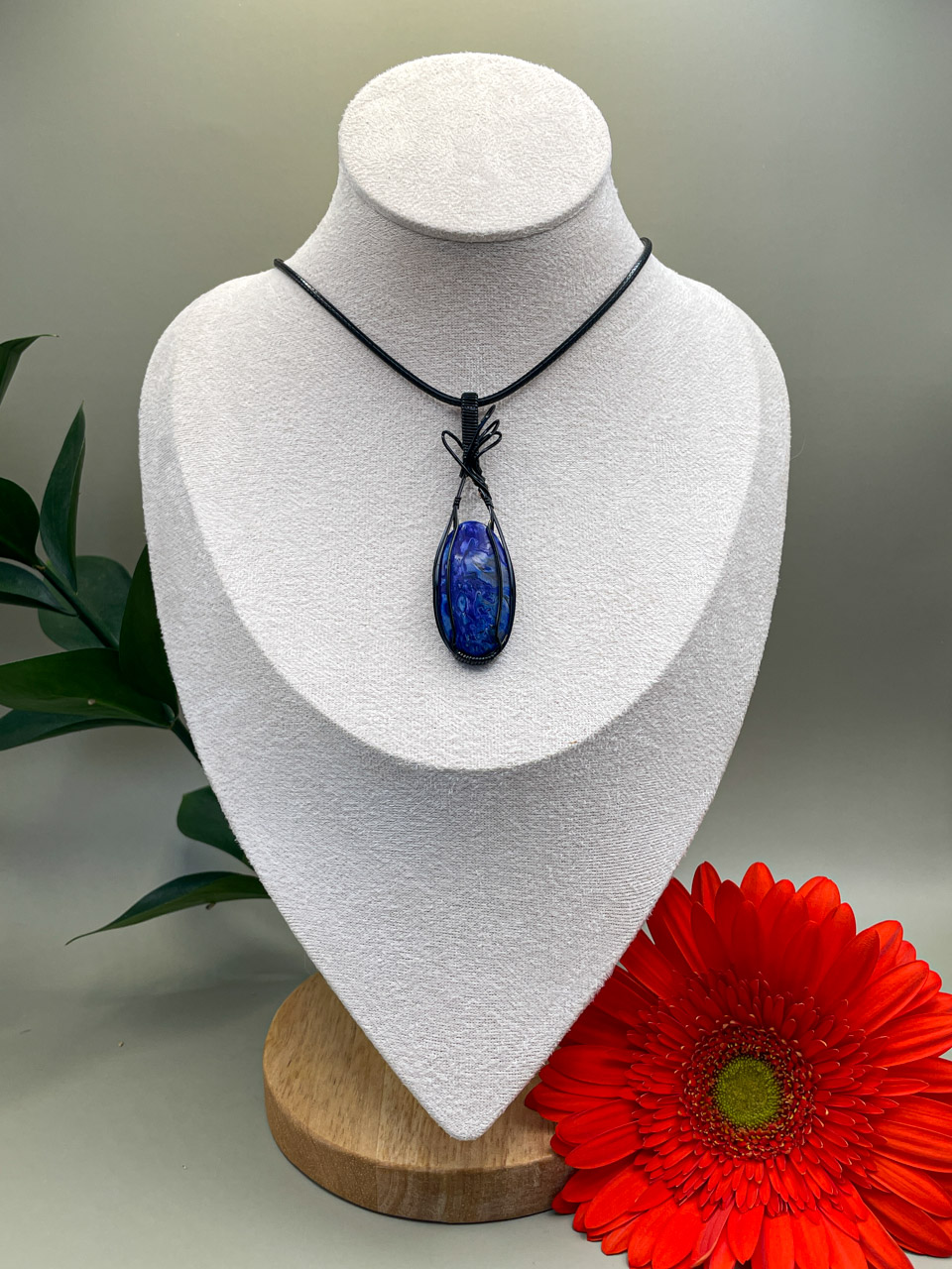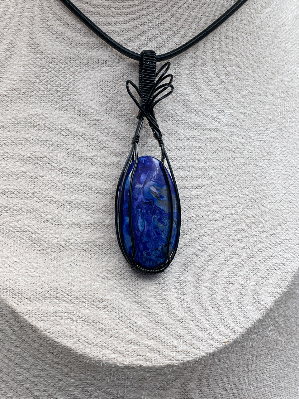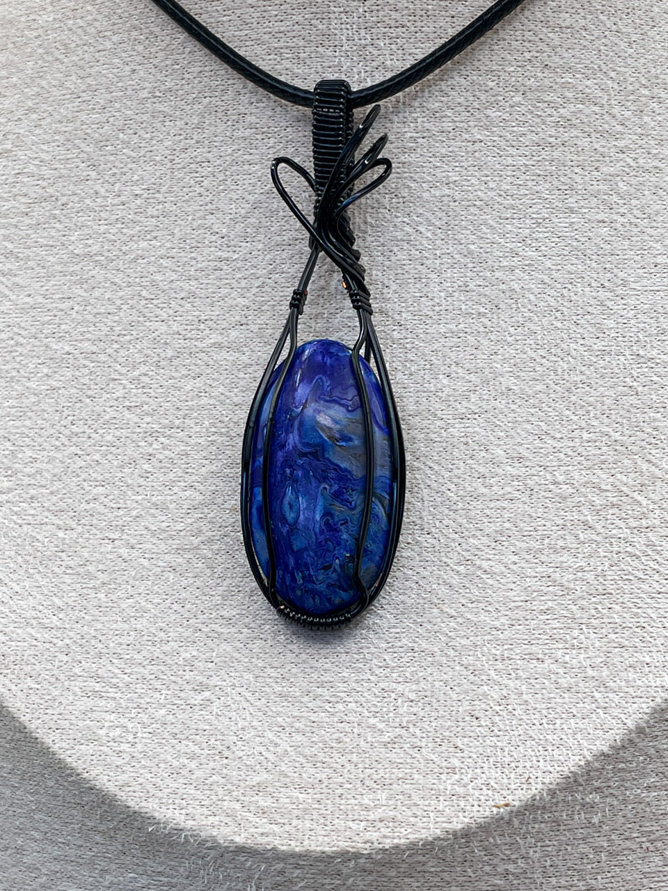 Dobarvený Palmový achát. Velikost kamene, včetně drátku: 2x7x0,9 cm. Přívěsek bude na voskované černé šňůrce.