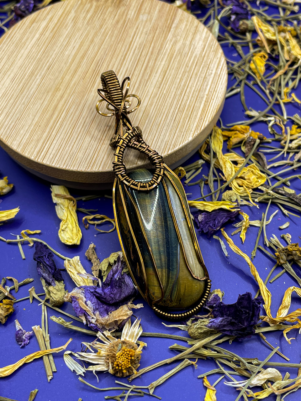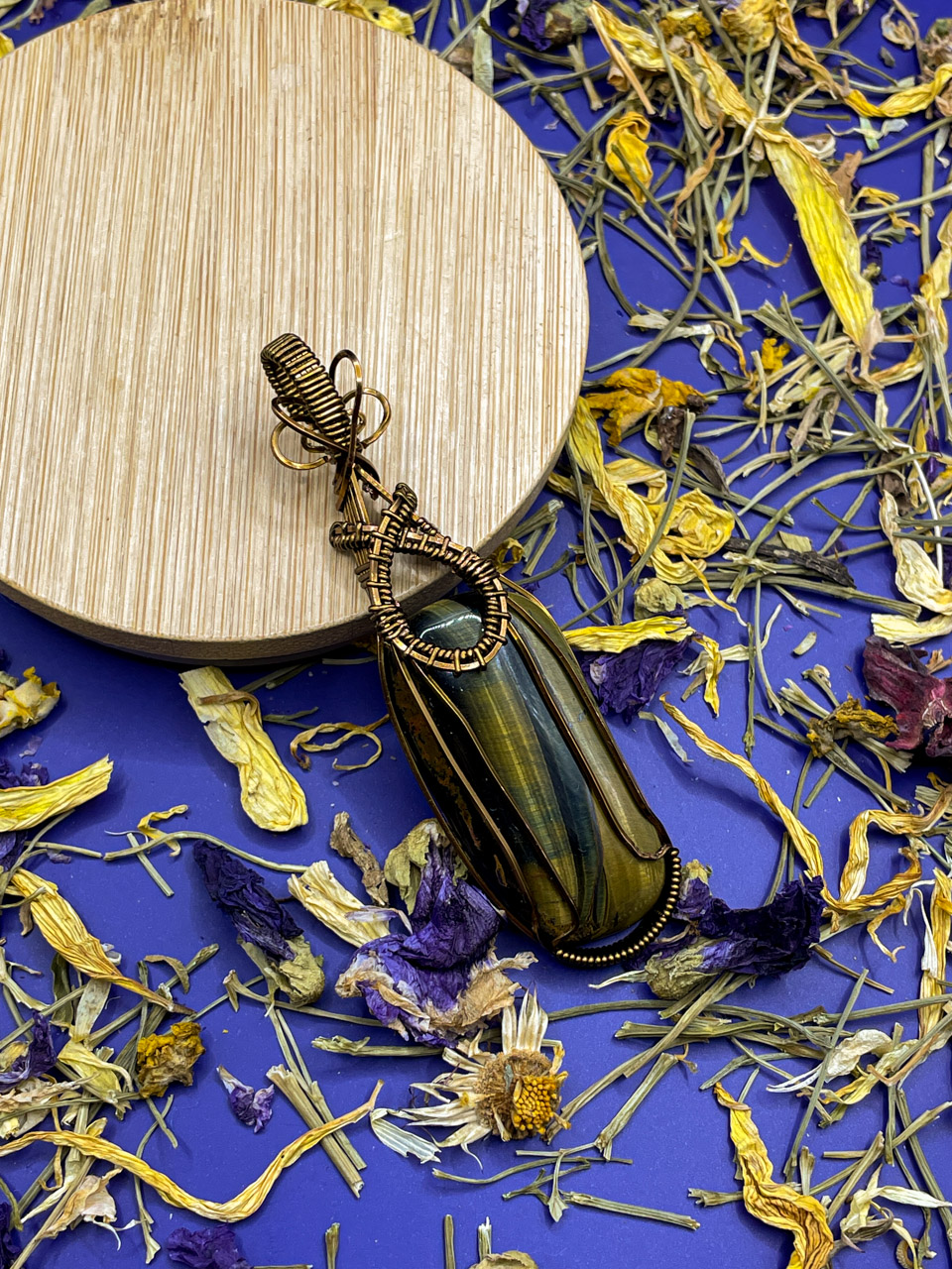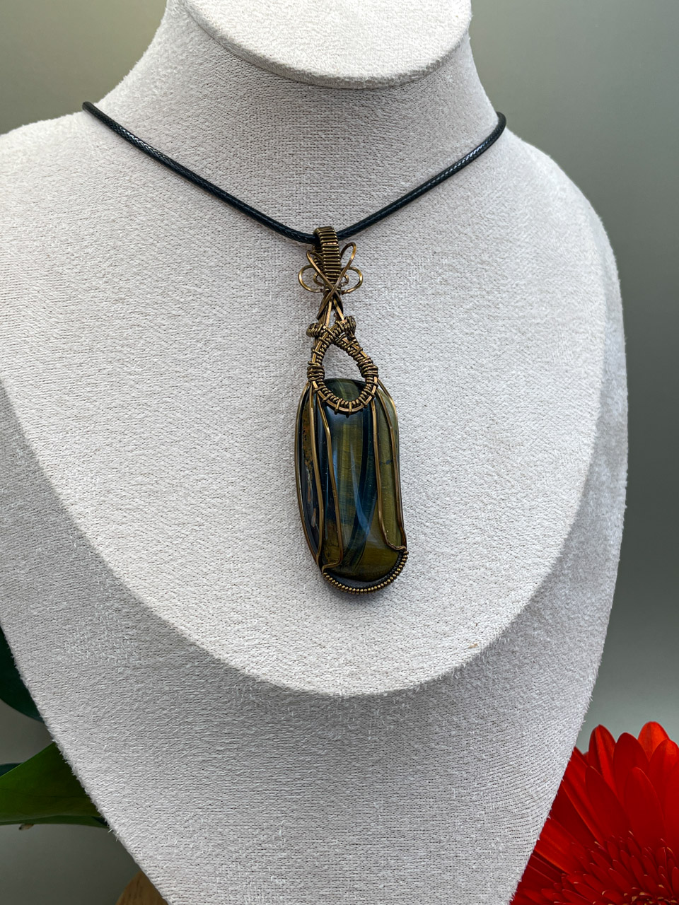 Velikost kamene, včetně drátku: 8,5x2,4x1,1 cm. Přívěsek bude na voskované černé šňůrce.