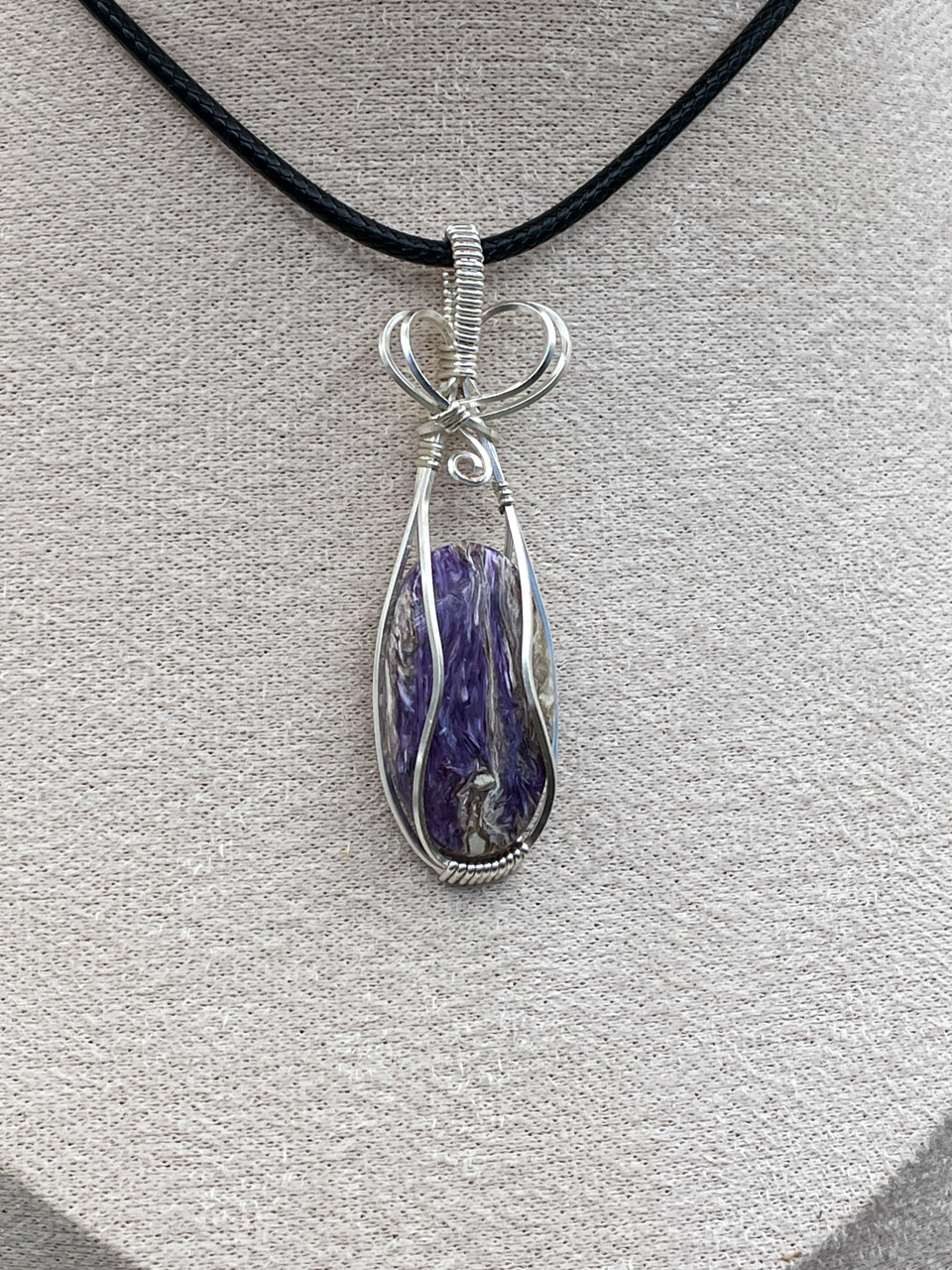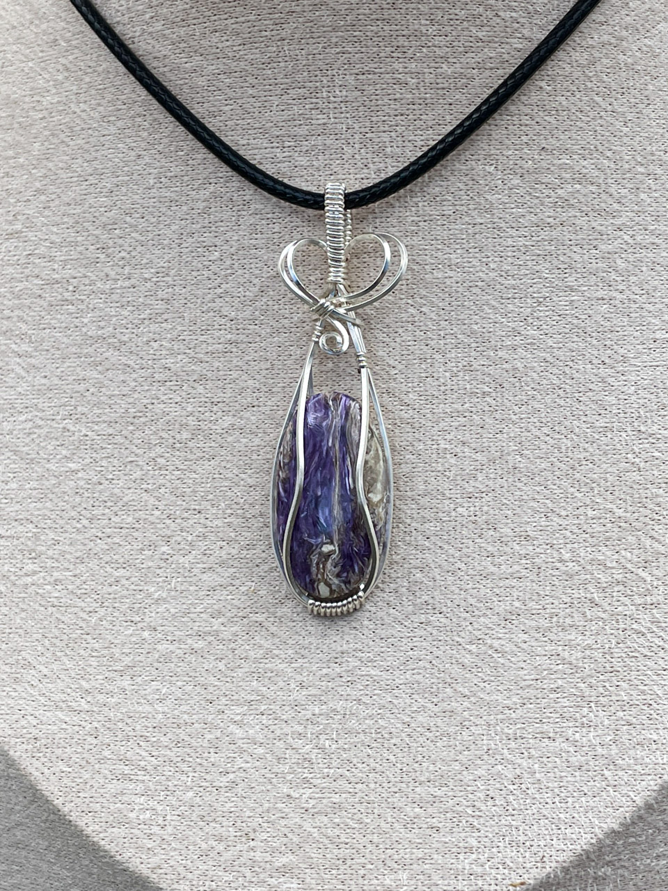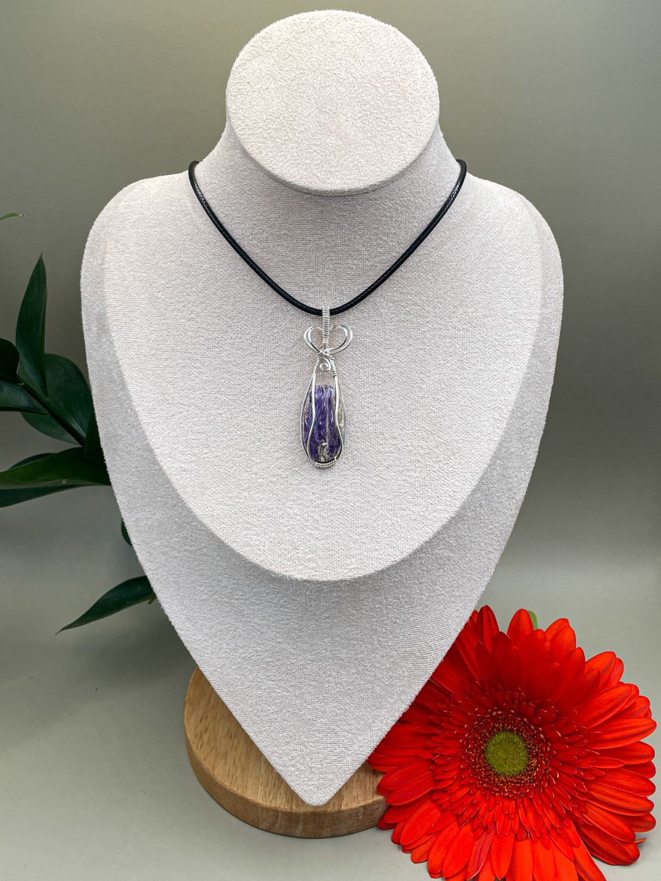 Velikost kamene včetně drátku: 1,6x5,7x0,7 cm. Přívěsek bude na voskované černé šňůrce.