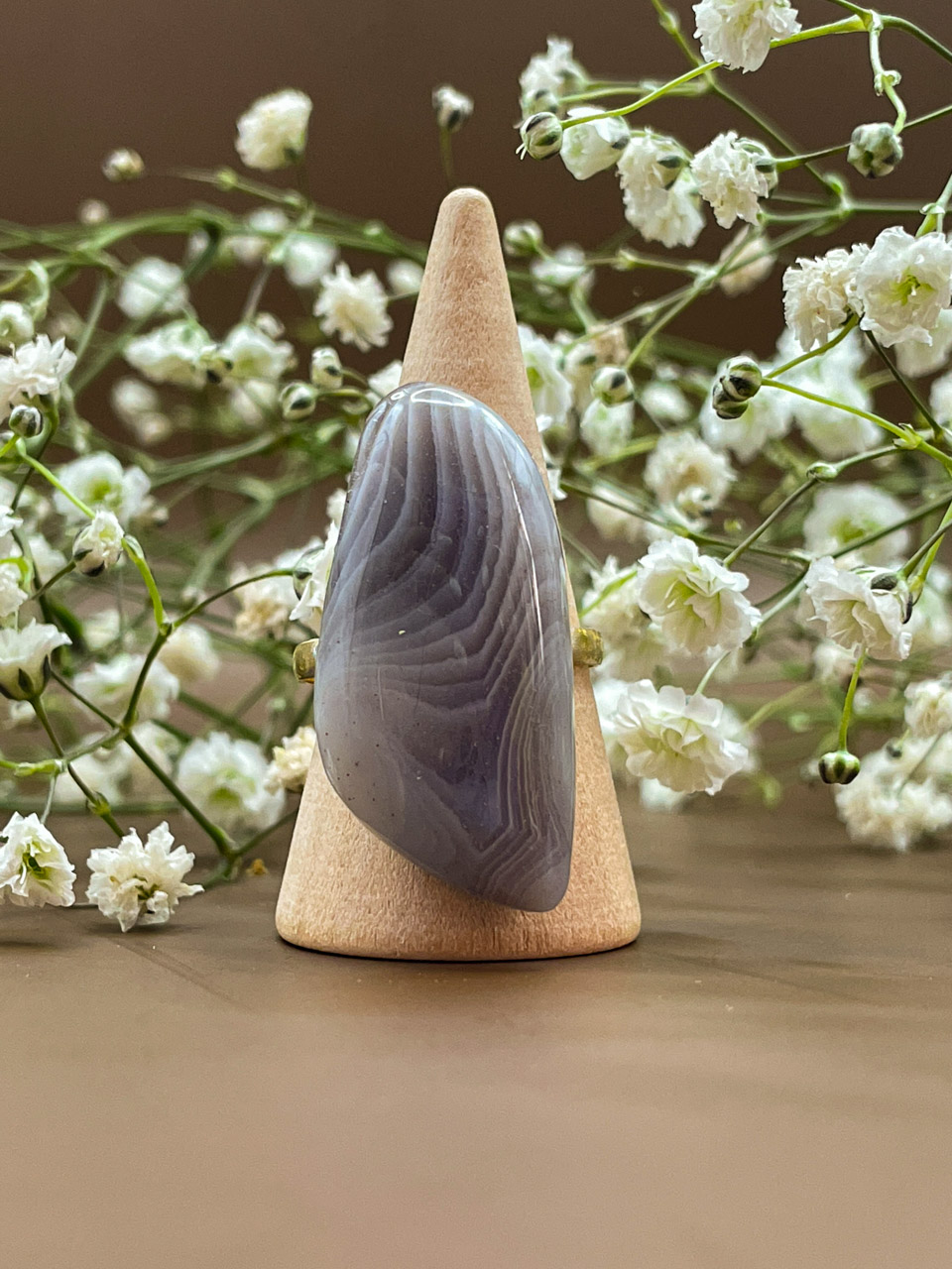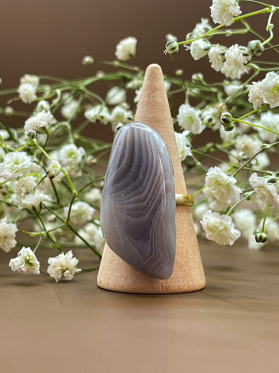Prsten je nastavitelný. Minerál je obalený v pryskyřici, aby neztrácel svou barvu.