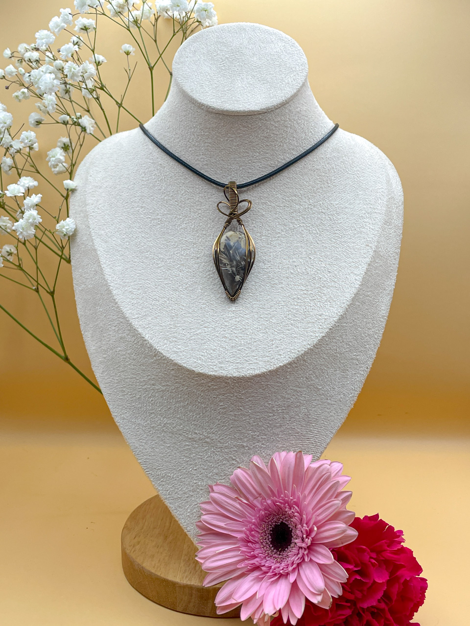 Přívěsek bude na voskované černé šňůrce dlouhé 45cm.
