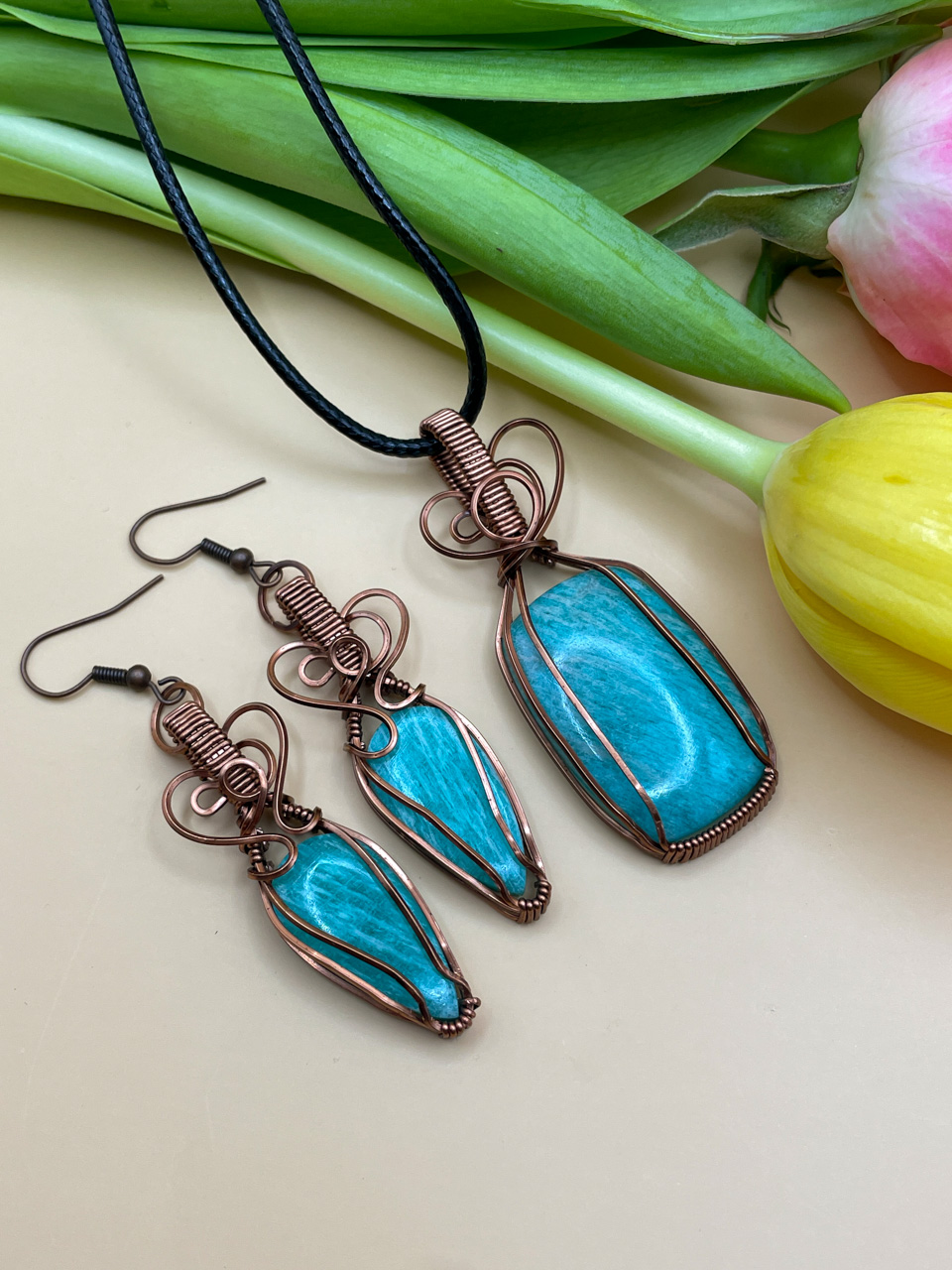 Velikost kamene (včetně drátku): přívěsek 2,3x5,8x0,6 cm; náušnice 1,3x4,6x0,5cm.