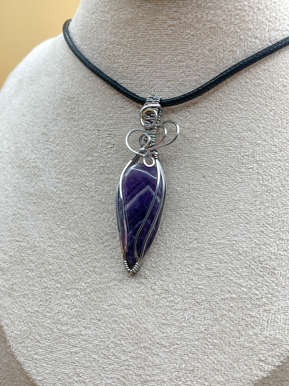 Velikost kamene včetně drátku: 1,7x6,1x0,7cm. Přívěsek bude na voskované černé šňůrce dlouhé 45cm.