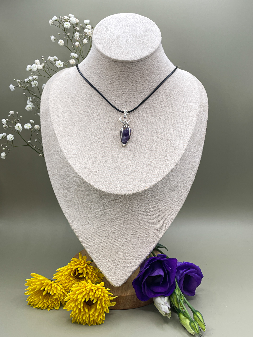 Velikost kamene včetně drátku: 1,1x3,9x0,8 cm. Přívěsek bude na voskované černé šňůrce.