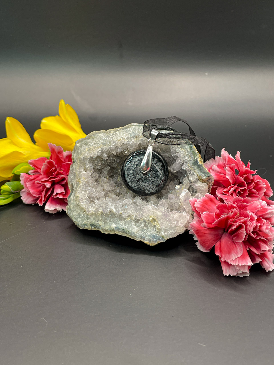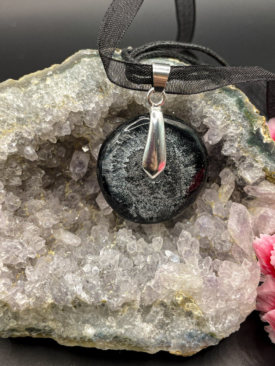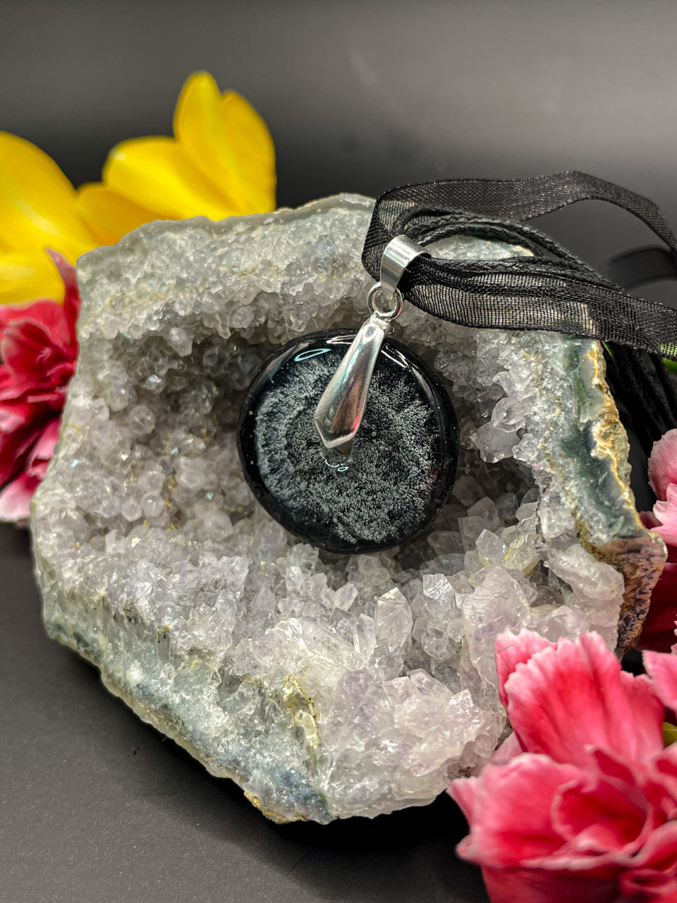 Hadí řetízek s přívěskem z pryskyřice. Délka řetízku je 70cm. Donut je velký 2,5cm.