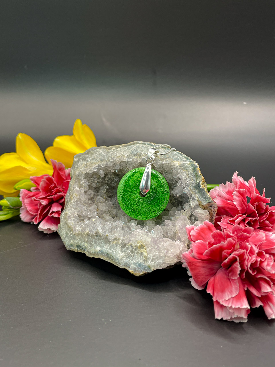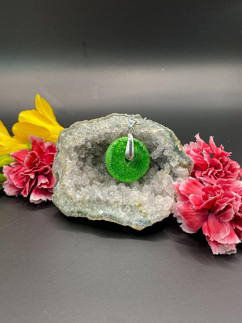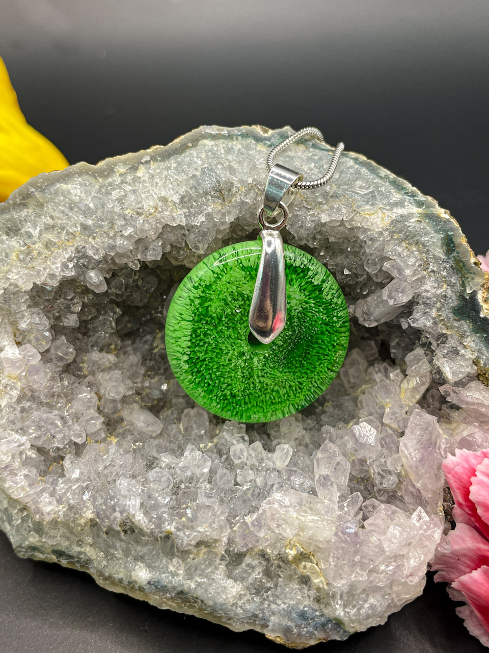 Hadí řetízek s přívěskem z pryskyřice. Délka řetízku je 70cm. Donut je velký 2,5cm.