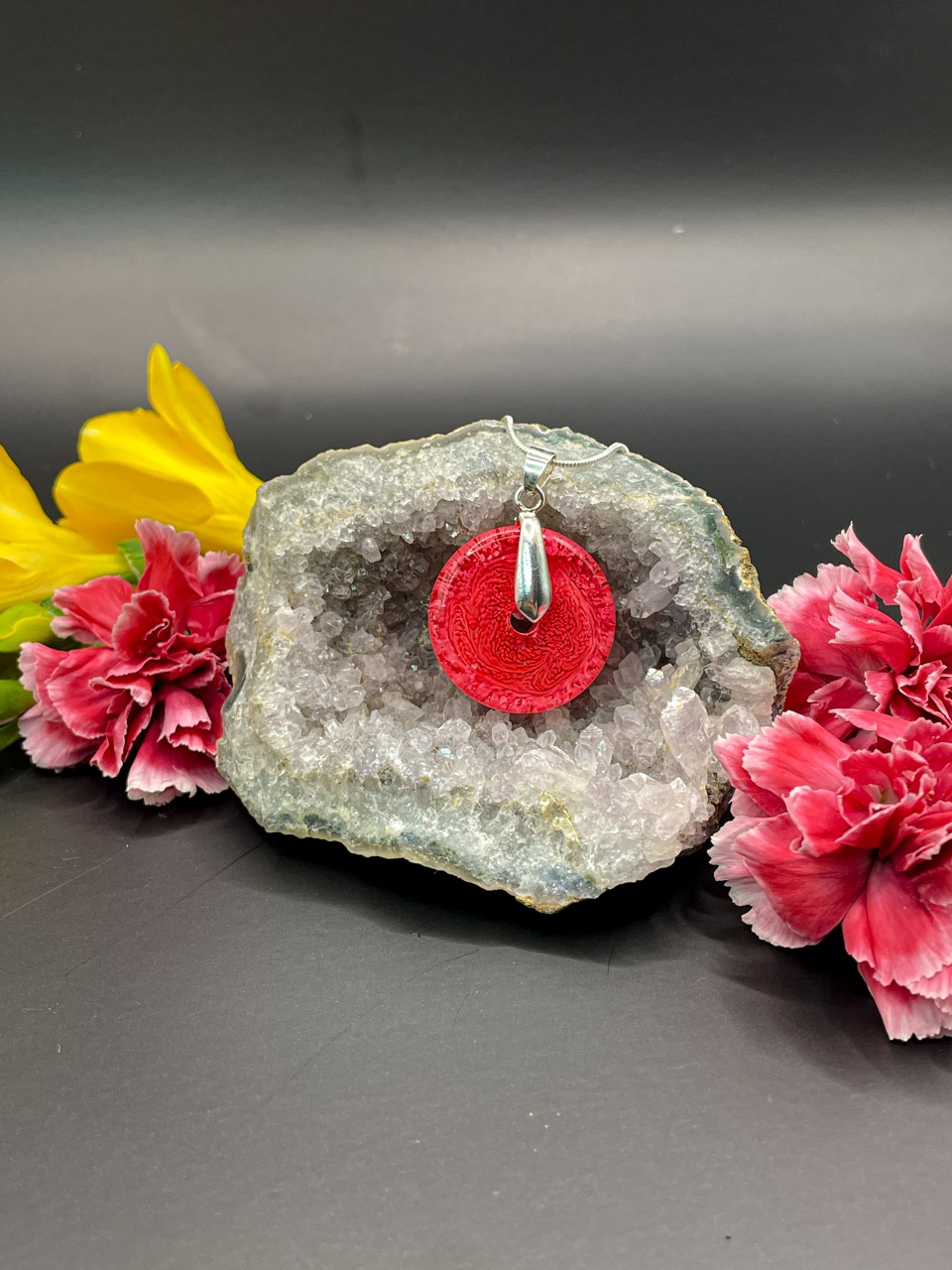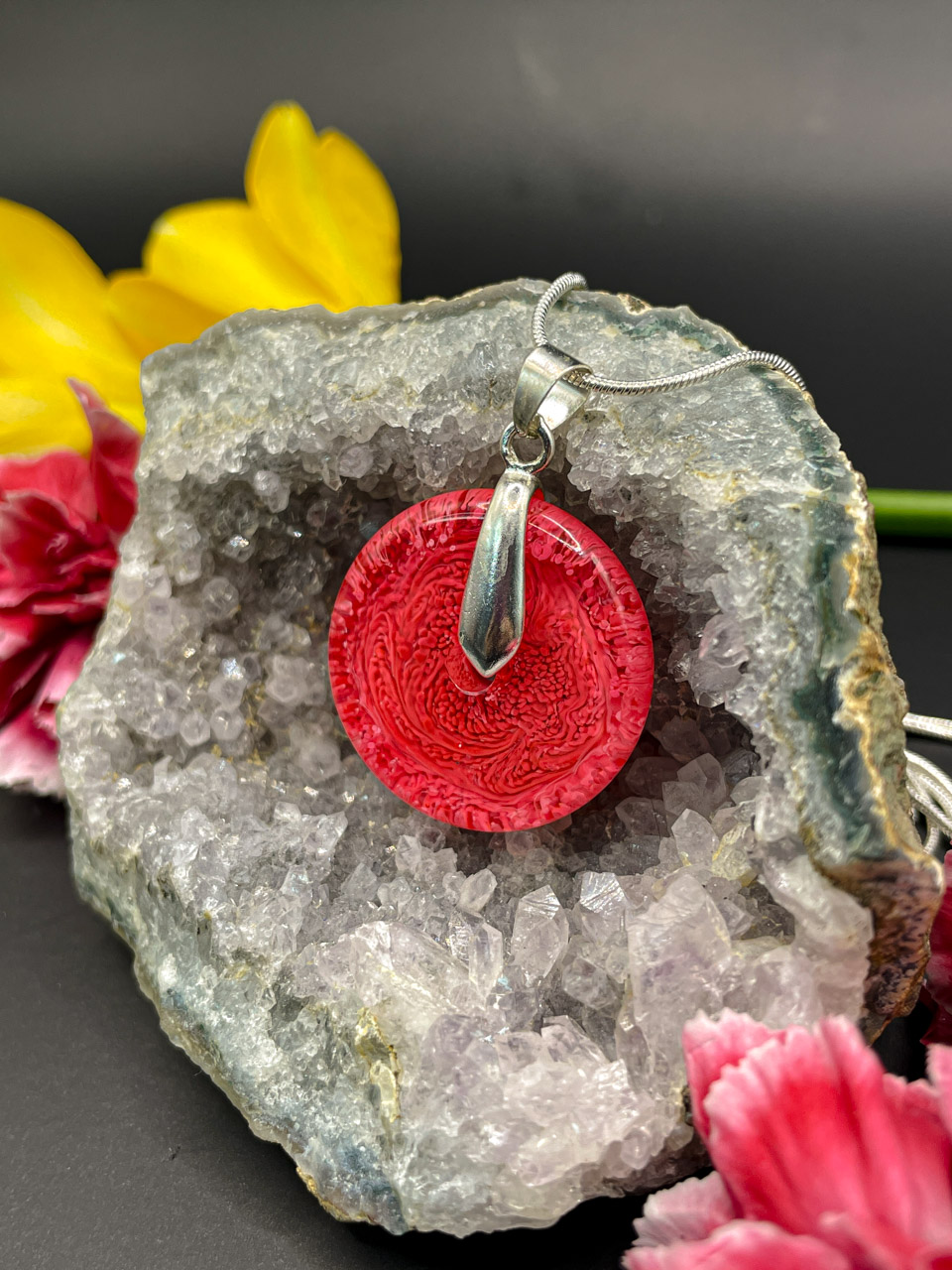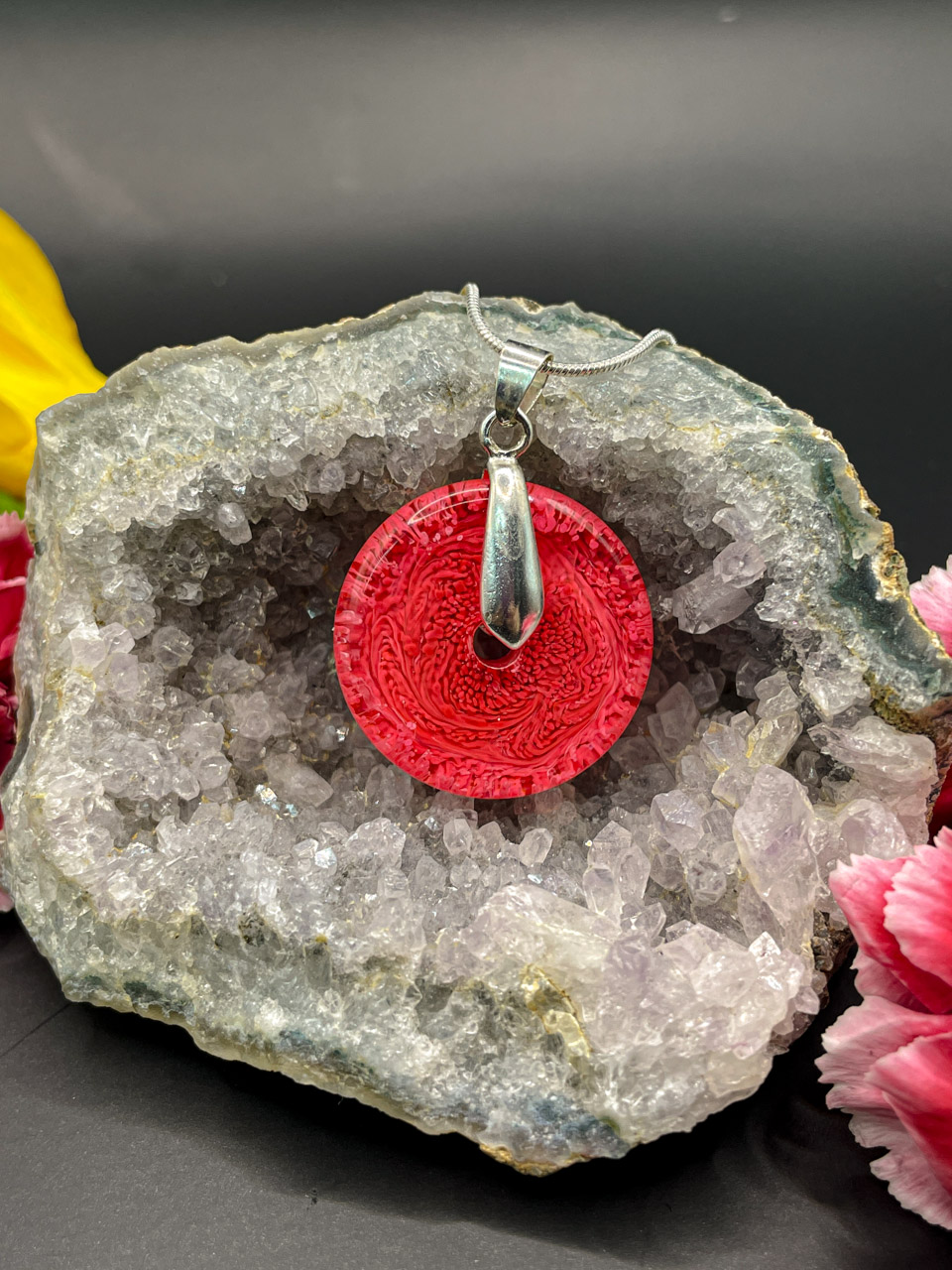 Hadí řetízek s přívěskem z pryskyřice. Délka řetízku je 70cm. Donut je velký 2,5cm.