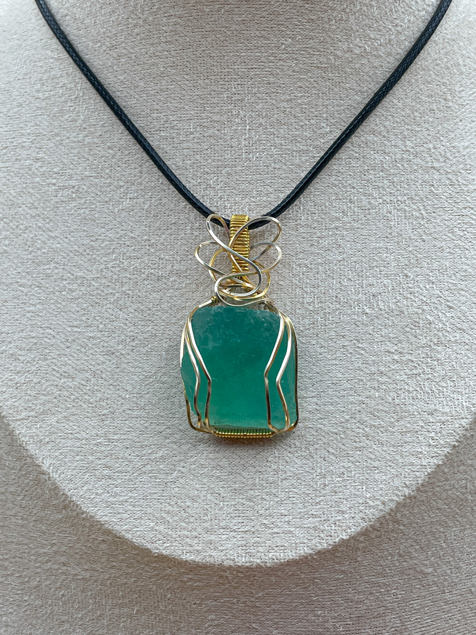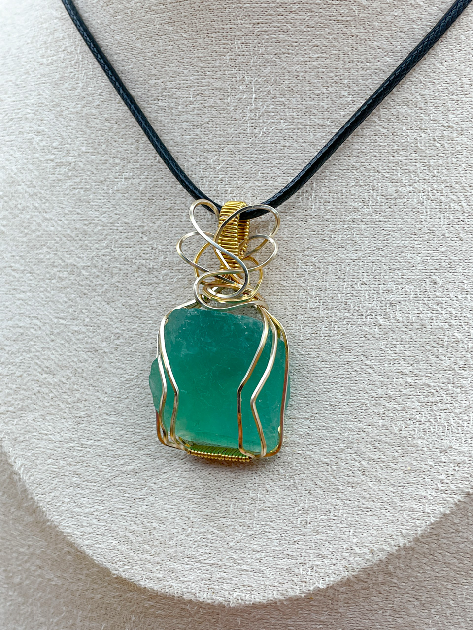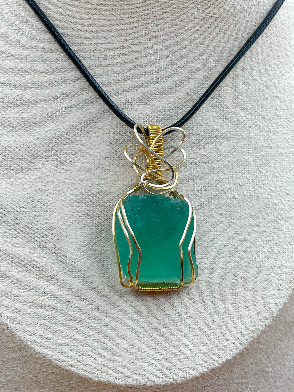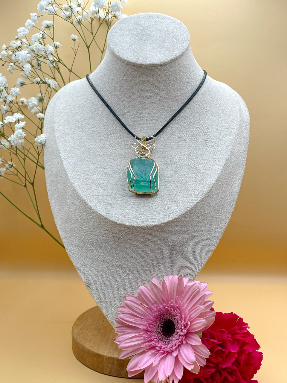 Velikost kamene včetně drátku: 2,5x5x1,3 cm. Přívěsek bude na voskované černé šňůrce.