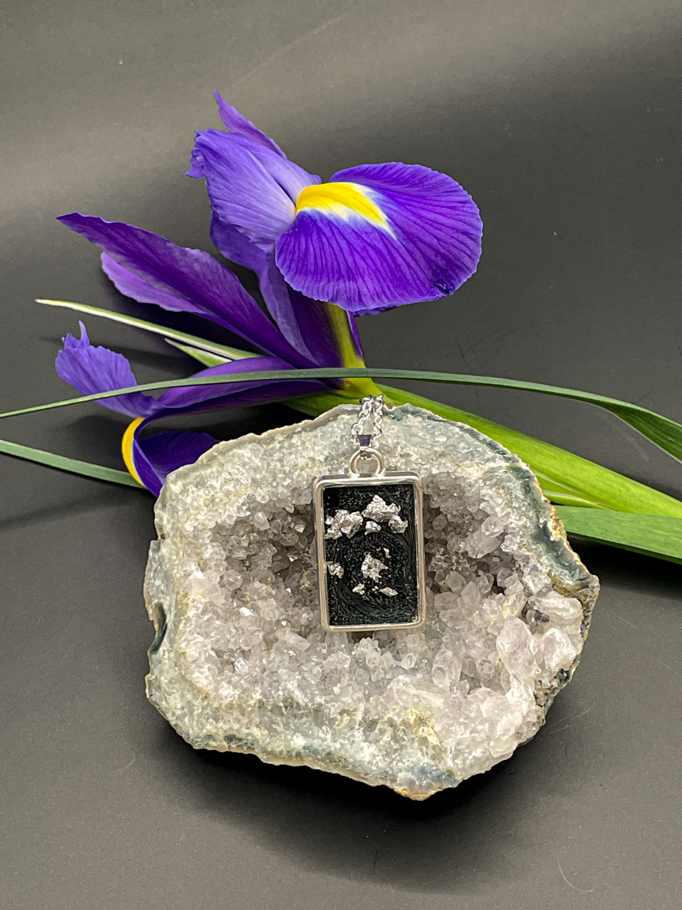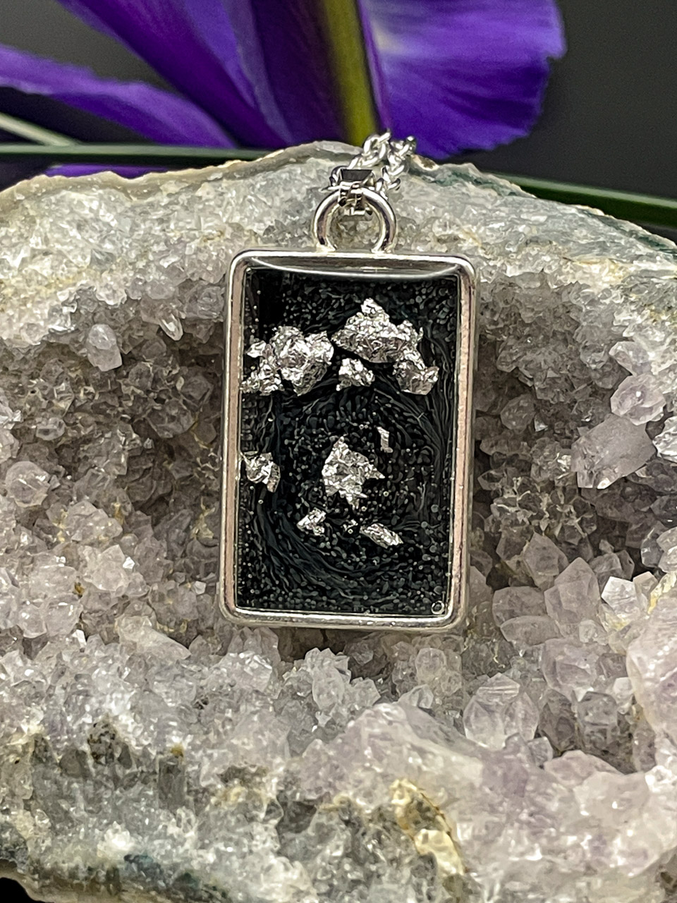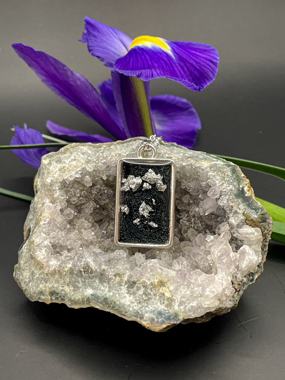 Pryskyřice ve stříbrném rámu. Řetízek je dlouhý 50cm + 7cm prodlužovací řetízek.