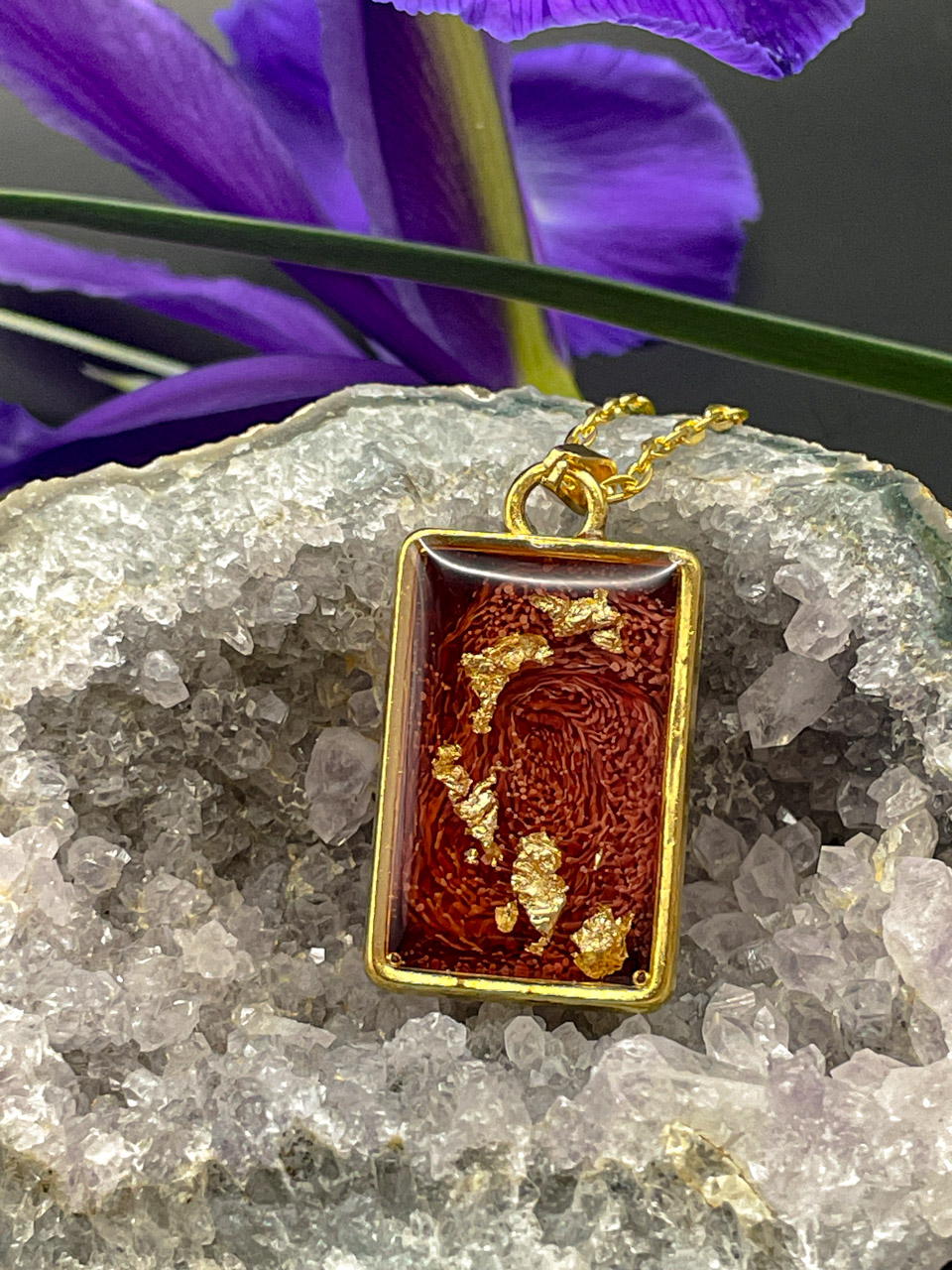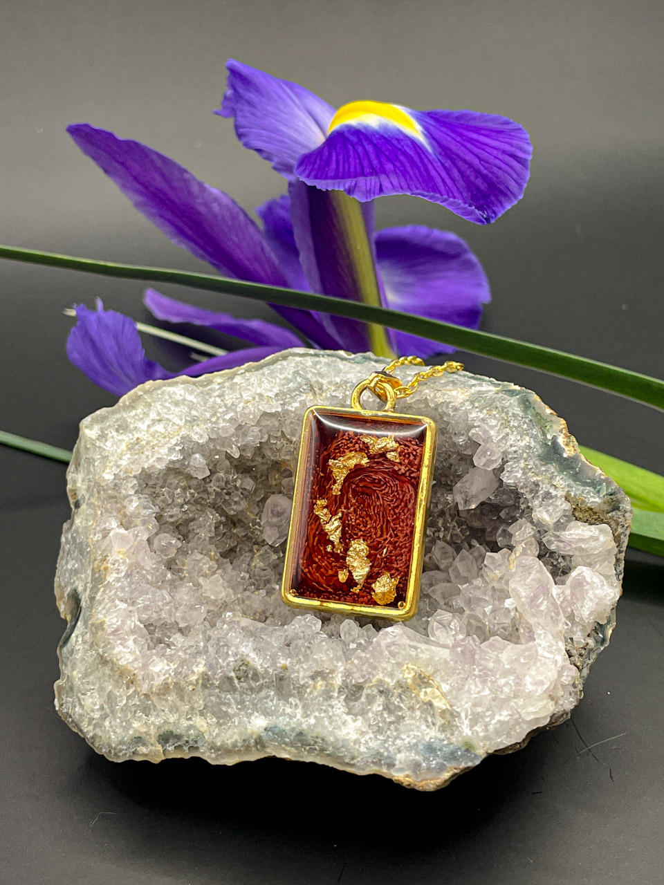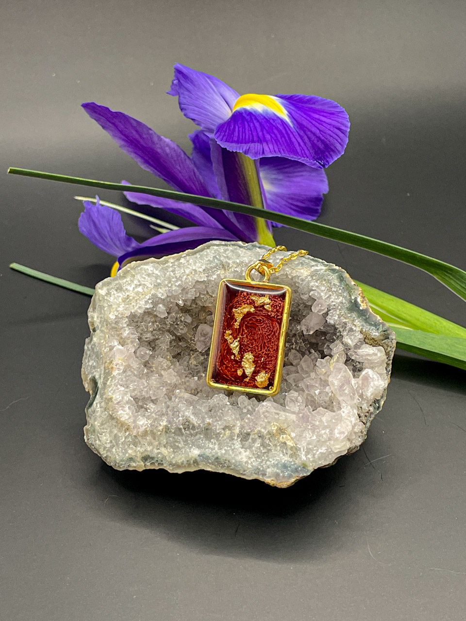 Pryskyřice ve zlatém rámu. Řetízek je dlouhý 50cm + 7cm prodlužovací řetízek.