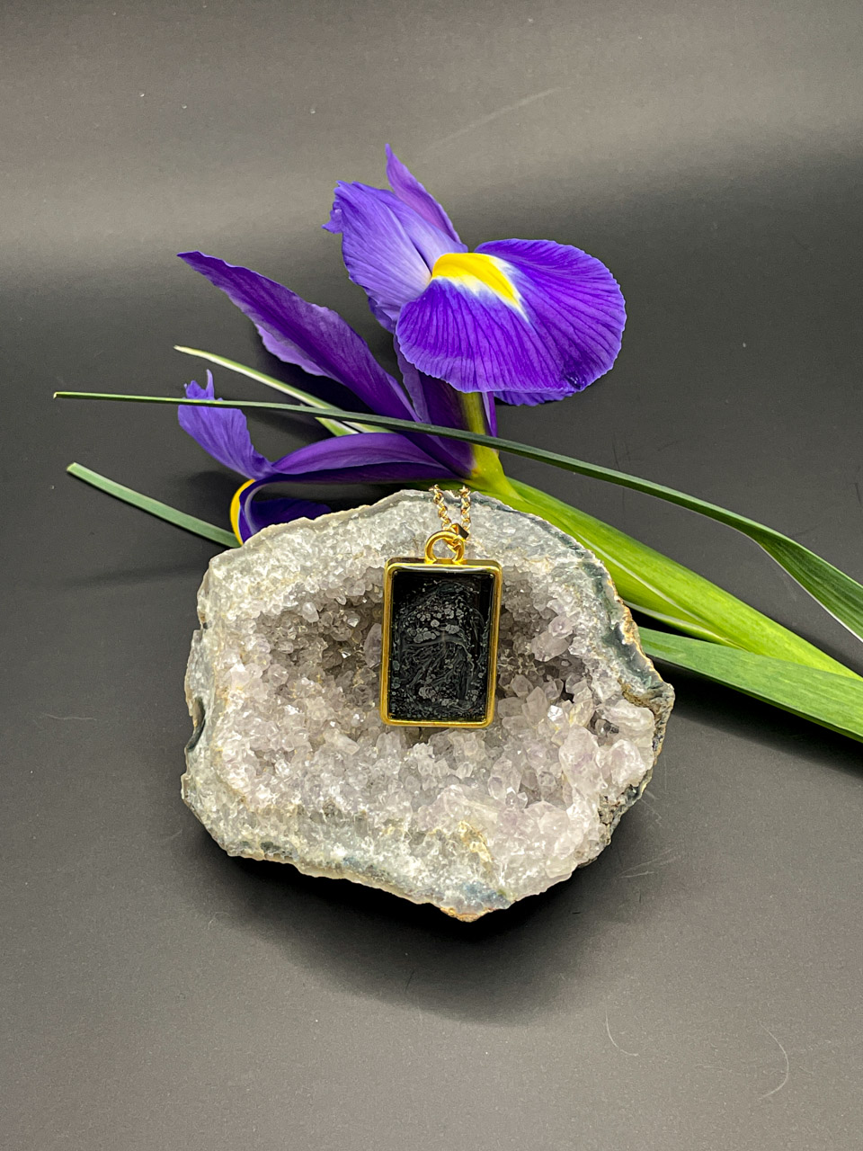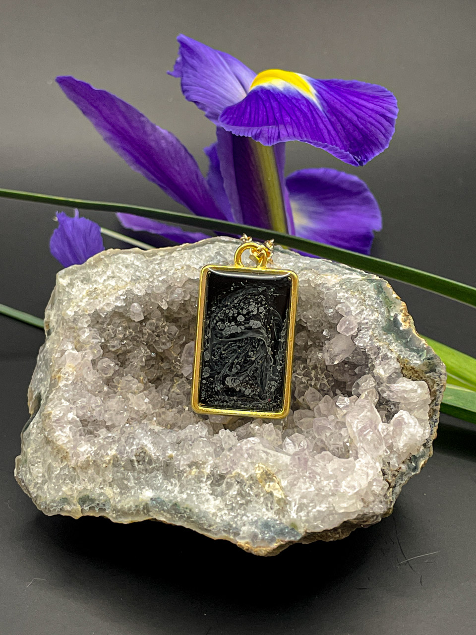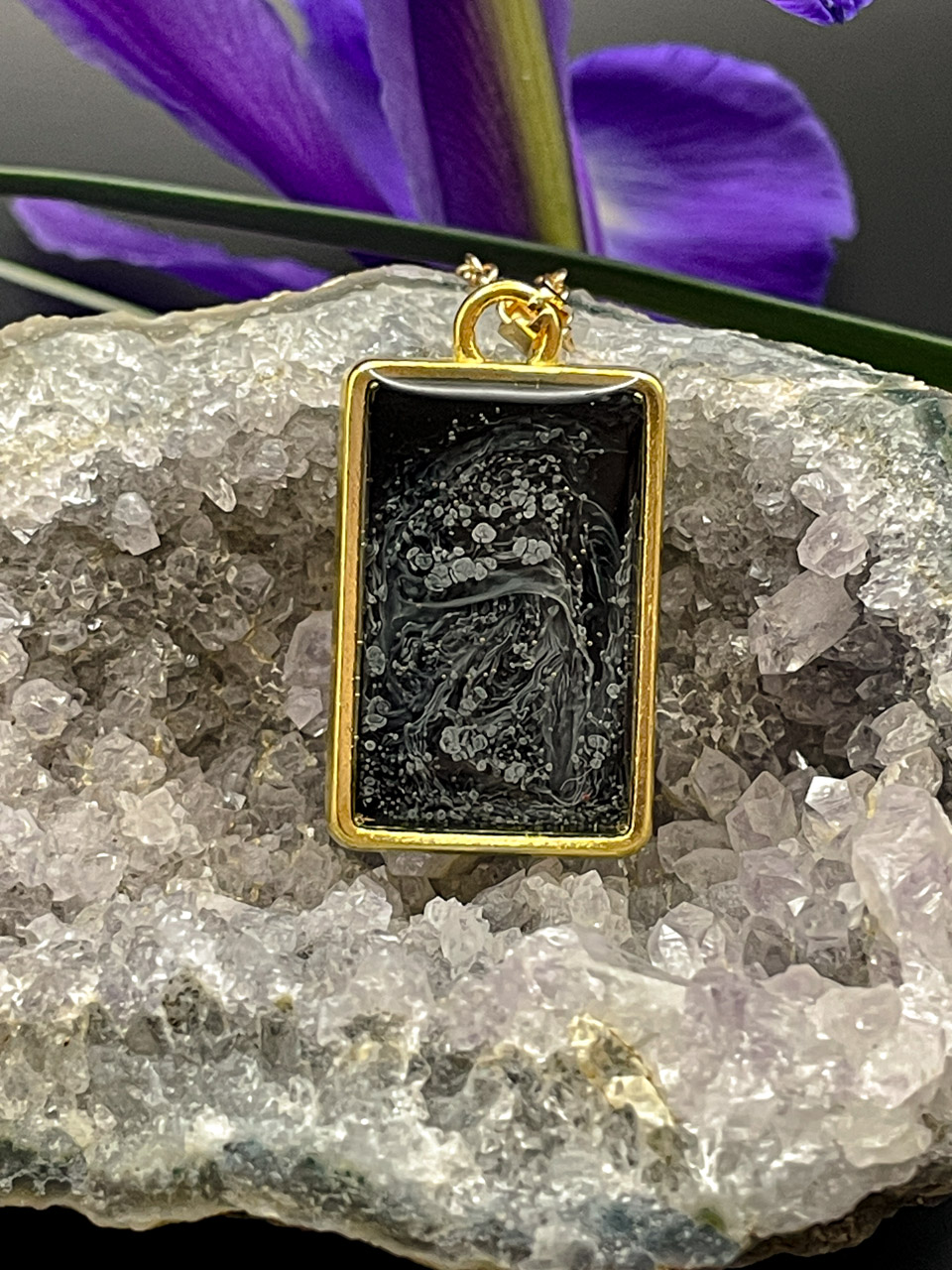 Pryskyřice ve zlatém rámu. Řetízek je dlouhý 50cm + 7cm prodlužovací řetízek.