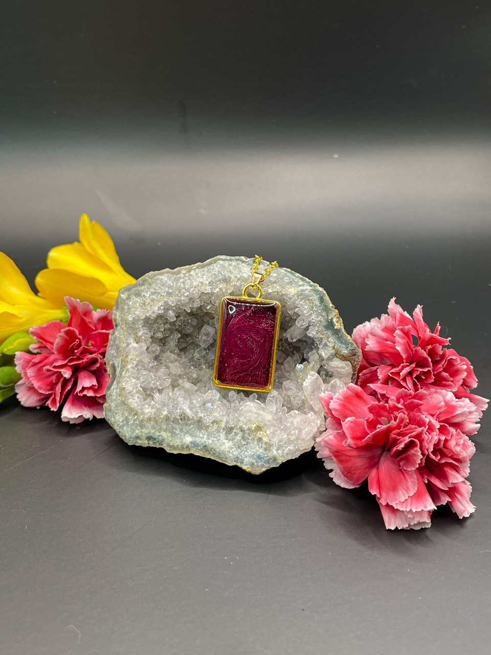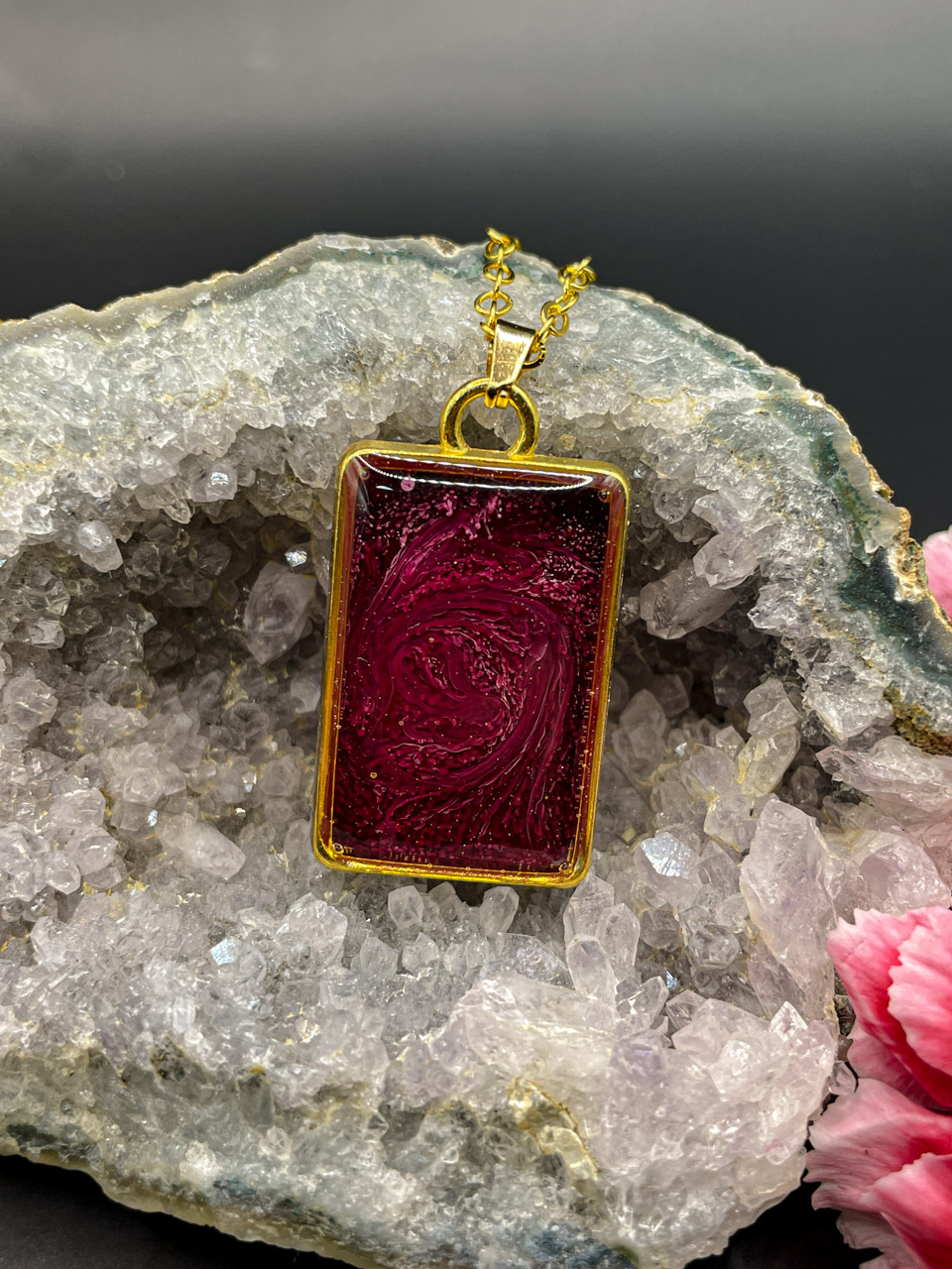 Pryskyřice ve zlatém rámu. Řetízek je dlouhý 50cm + 7cm prodlužovací řetízek.