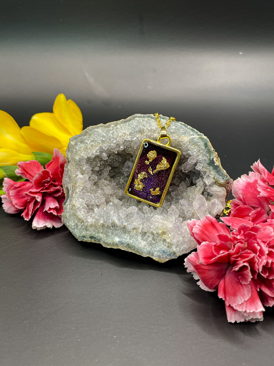 Pryskyřice ve zlatém rámu. Řetízek je dlouhý 50cm + 7cm prodlužovací řetízek.