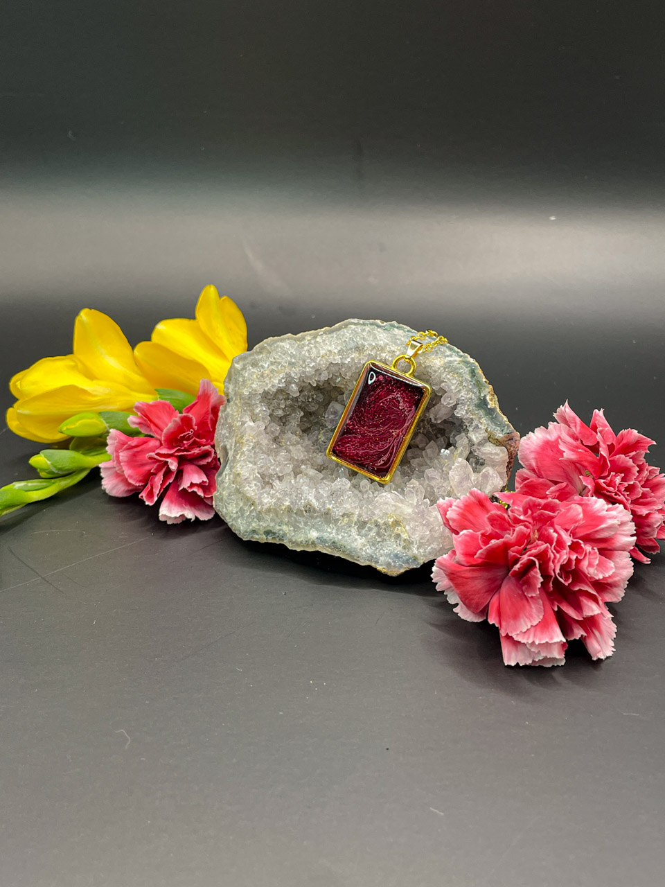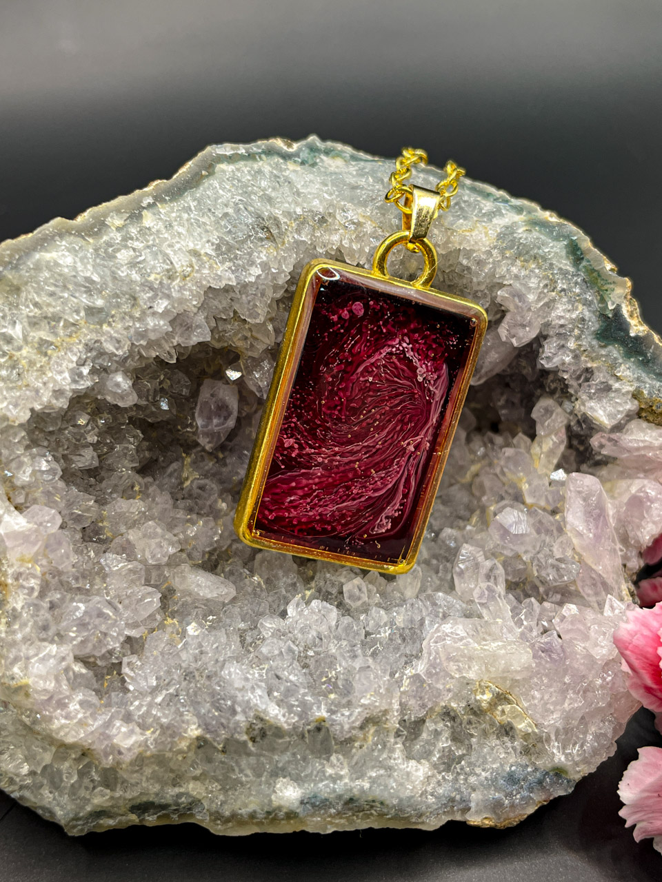 Pryskyřice ve zlatém rámu. Řetízek je dlouhý 50cm + 7cm prodlužovací řetízek.