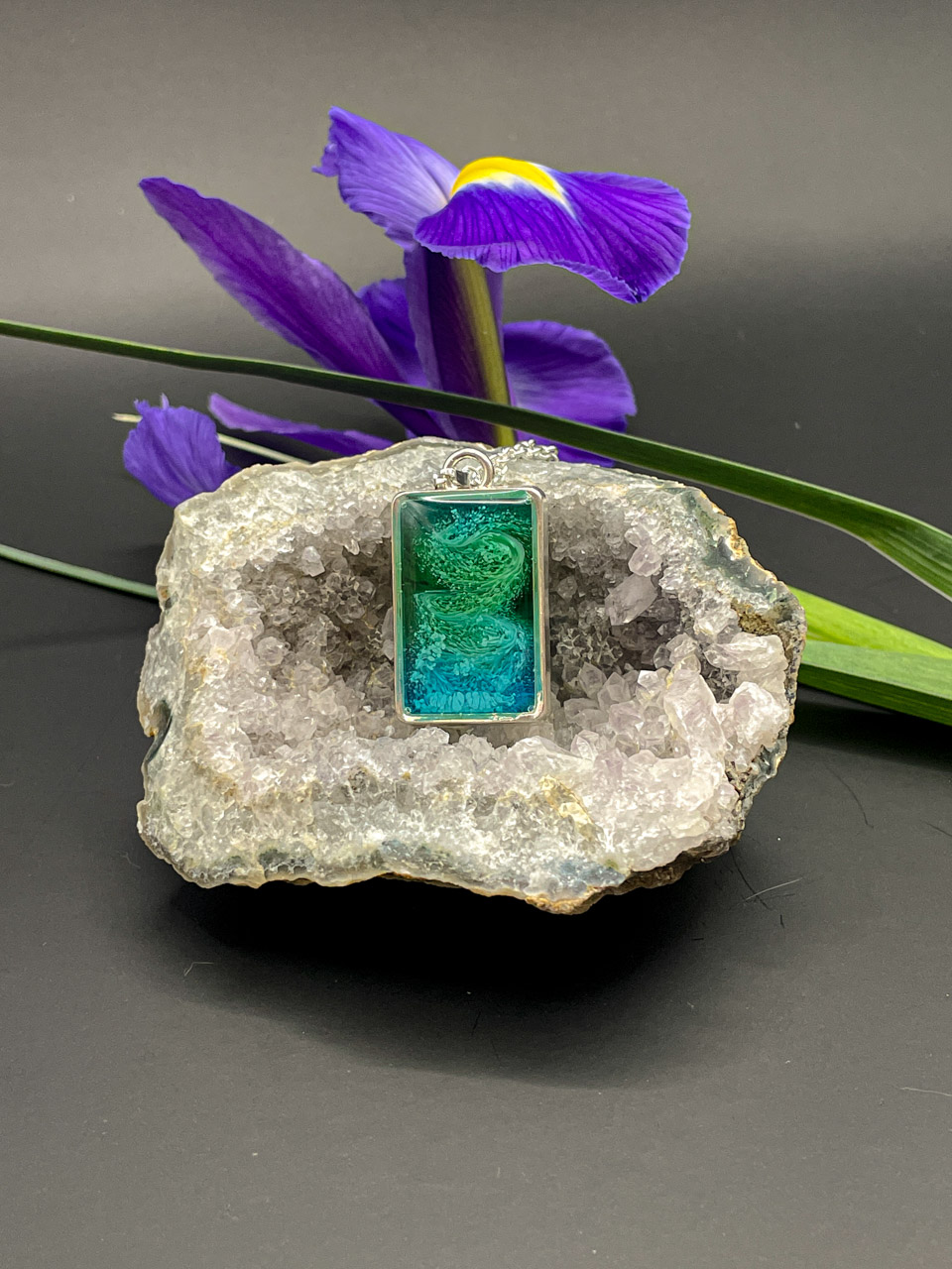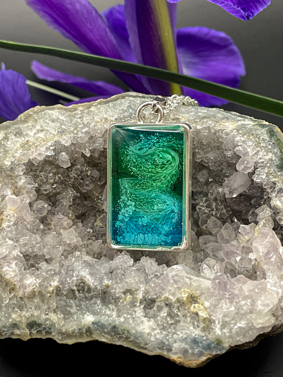 Pryskyřice ve stříbrném rámu. Řetízek je dlouhý 50cm + 7cm prodlužovací řetízek.