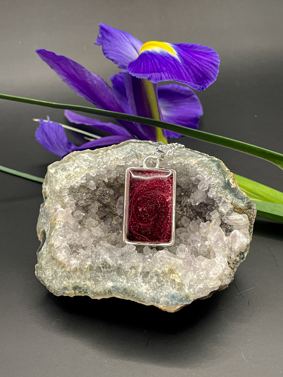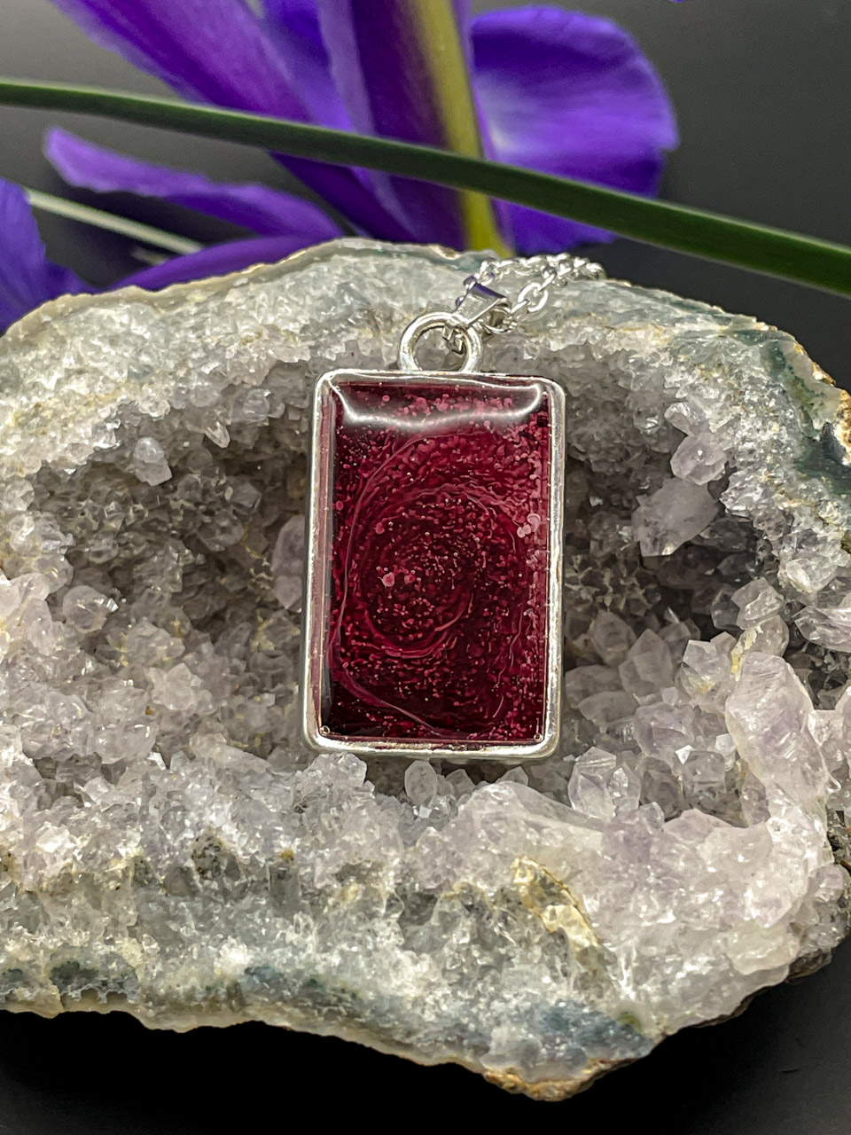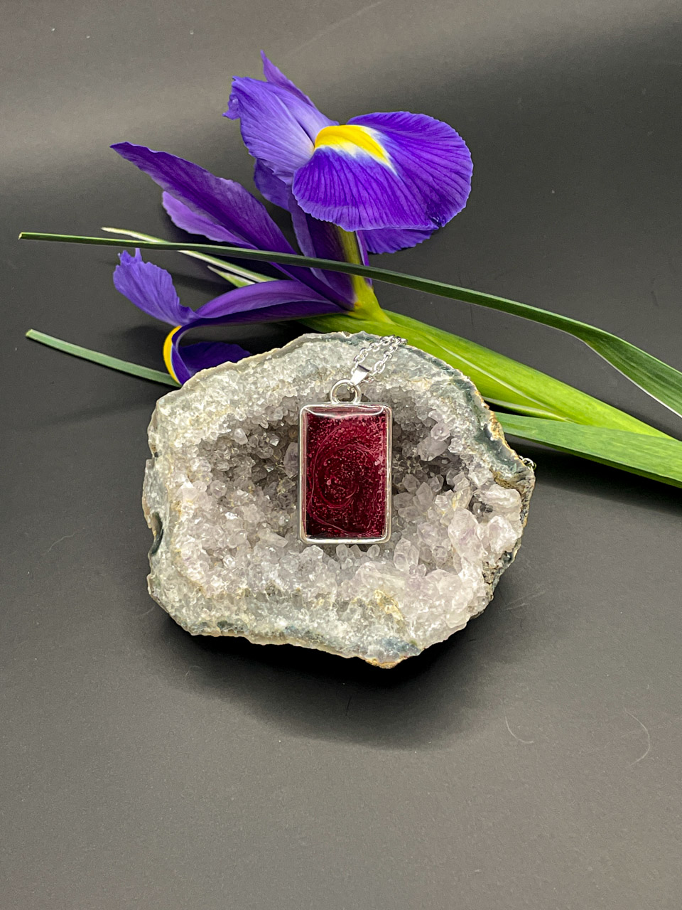 Pryskyřice ve stříbrném rámu. Řetízek je dlouhý 50cm + 7cm prodlužovací řetízek.
