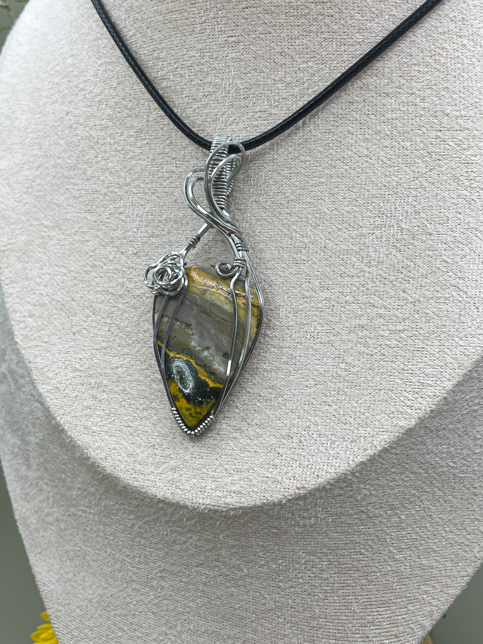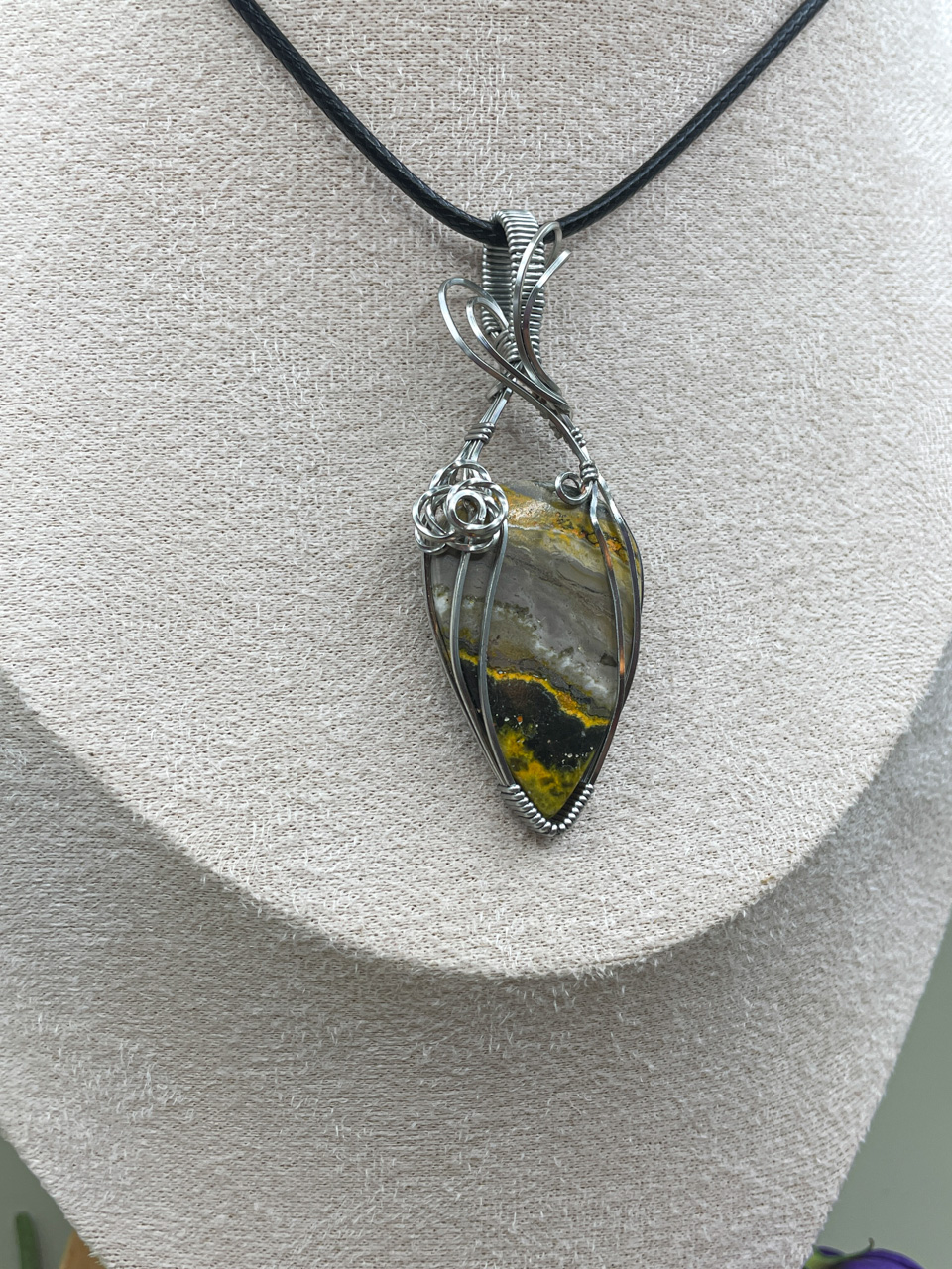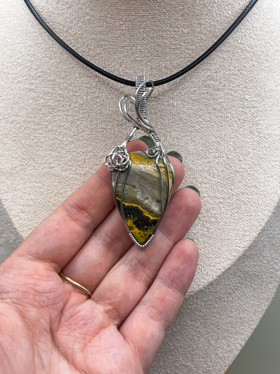 Velikost kamene, včetně drátku: 2,6x6,8x1 cm. Přívěsek bude na voskované černé šňůrce.