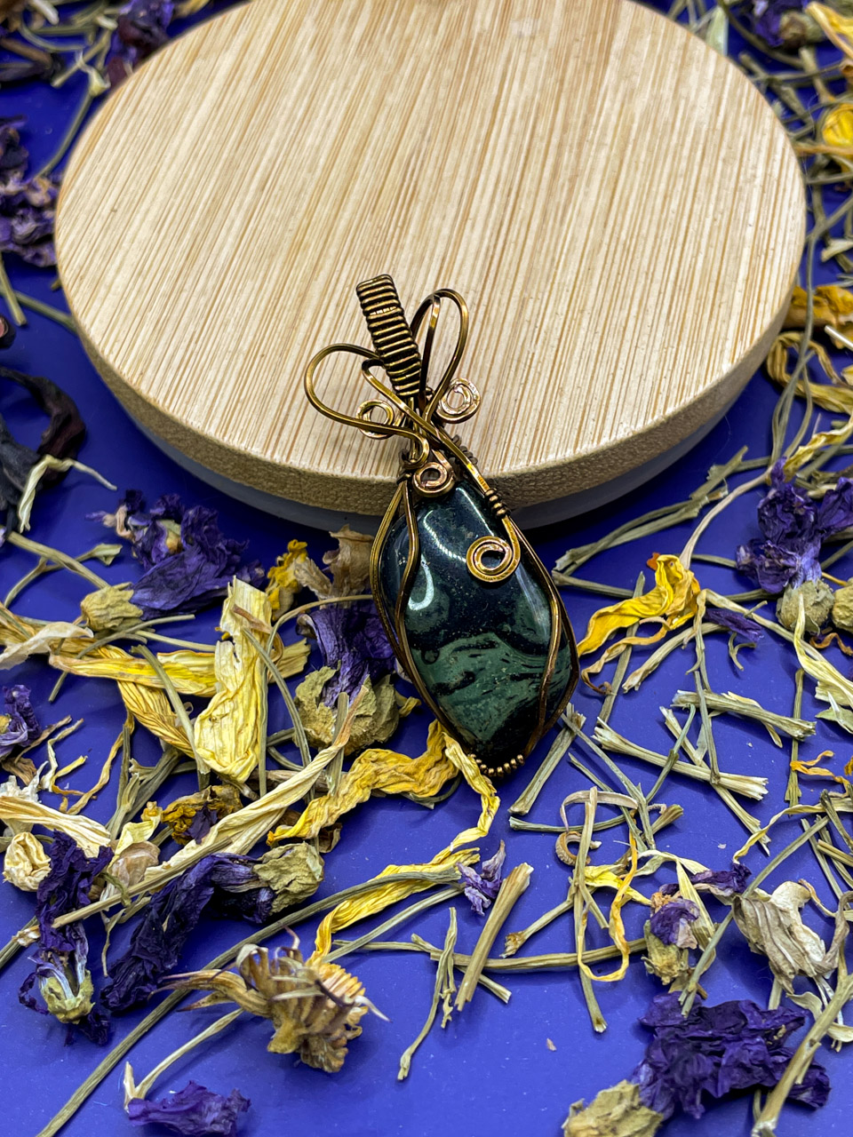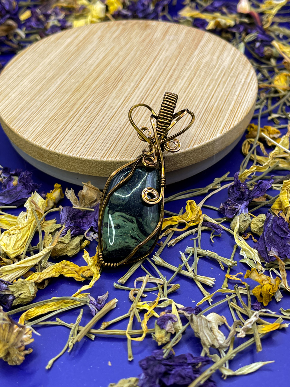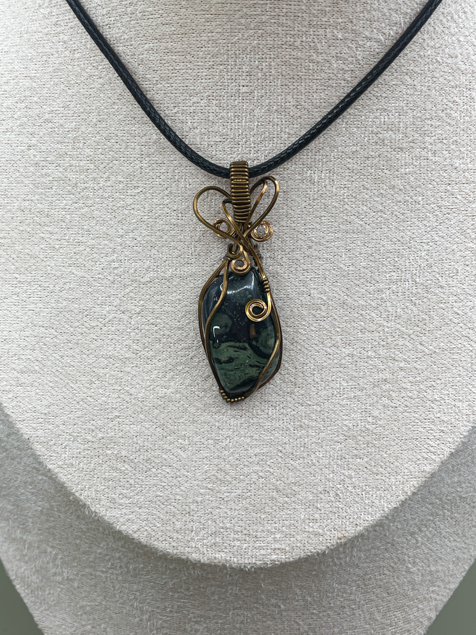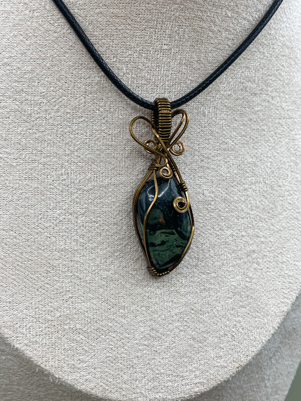 Velikost kamene, včetně drátku: 1,9x5,7x0,8 cm. Přívěsek bude na voskované černé šňůrce.