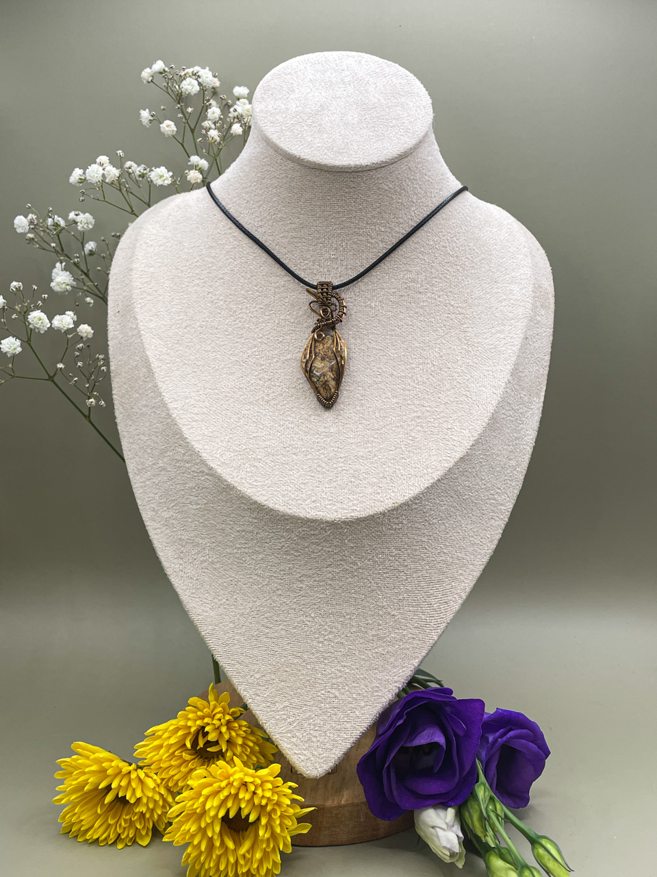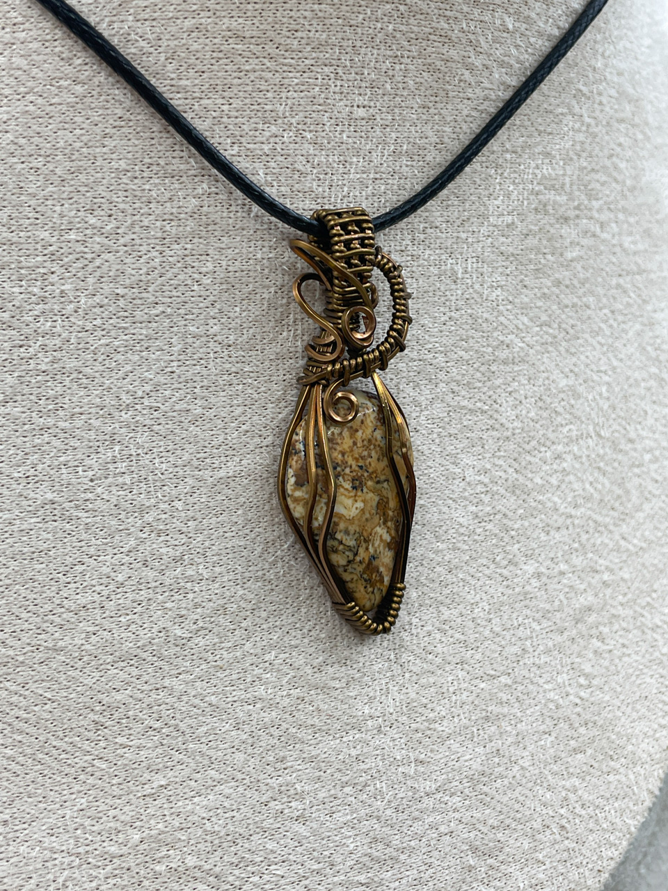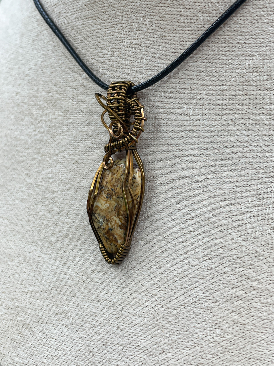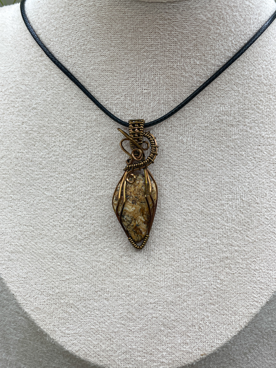 Velikost kamene včetně drátku: 1,7x4,9x0,6 cm. Přívěsek bude na voskované černé šňůrce.