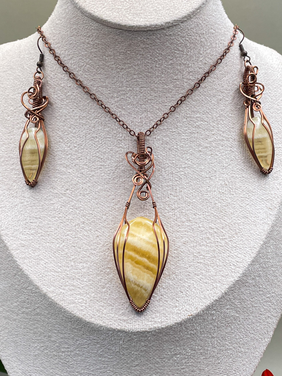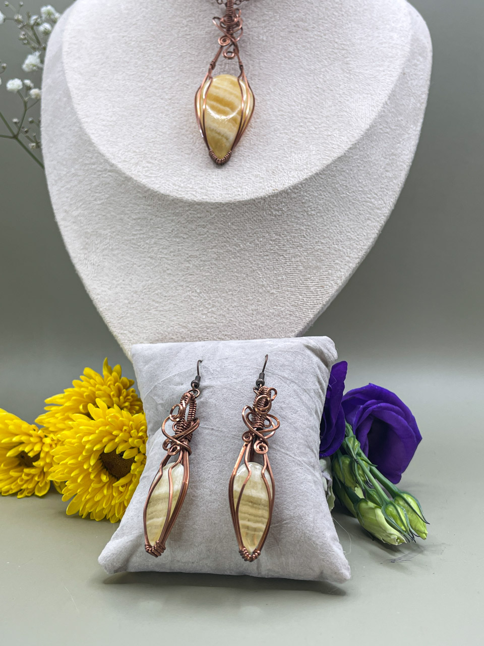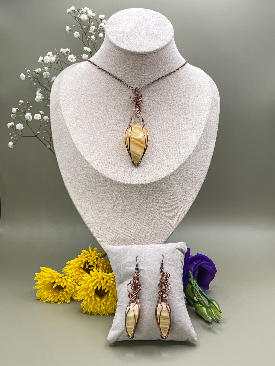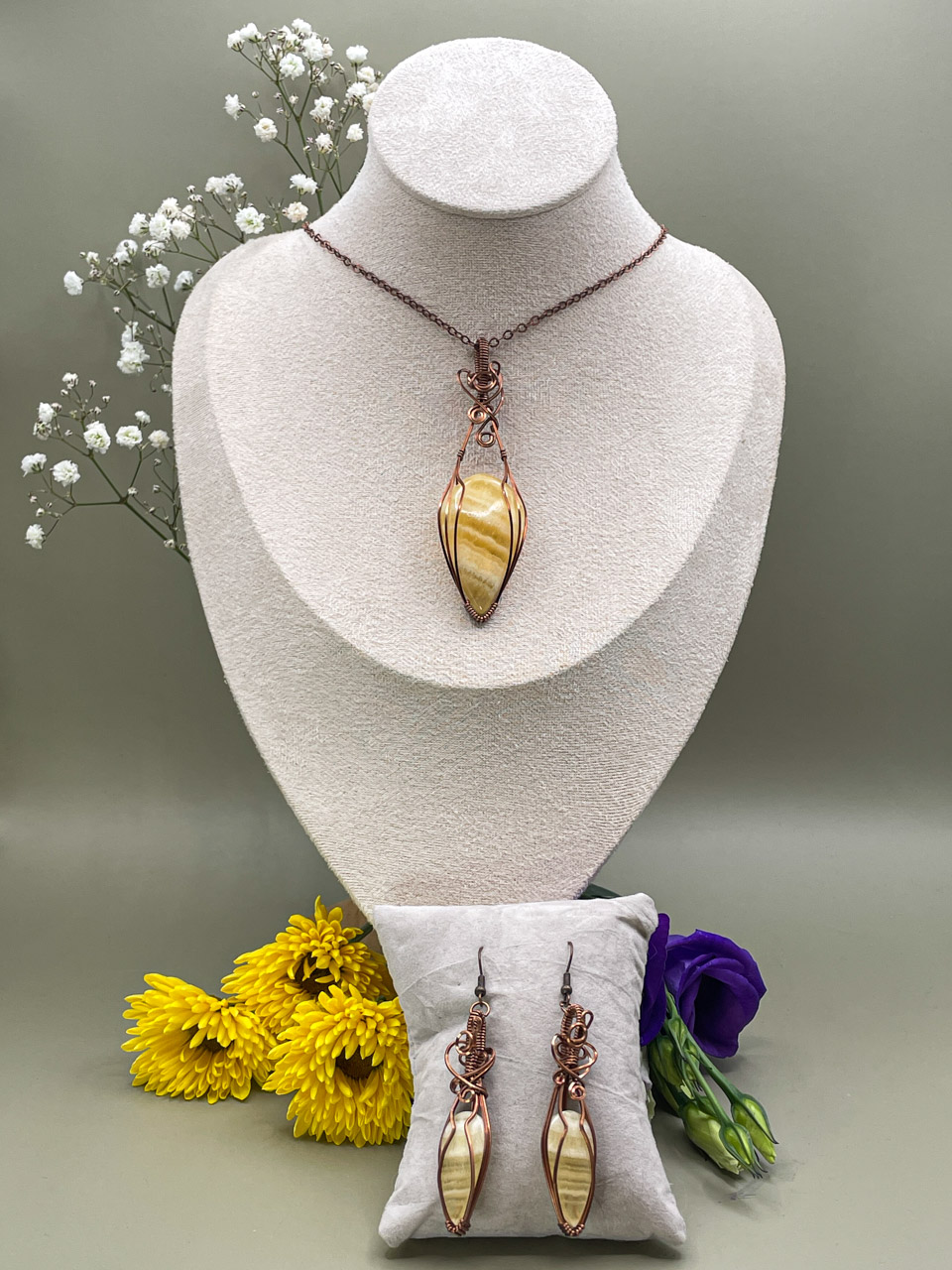 Velikost kamene včetně drátku: přívěsek 2,5x8,2x0,9 cm; náušnice 1,3x5,2x0,5cm. V ceně jsou náušnice a přívěsek s řetízkem.