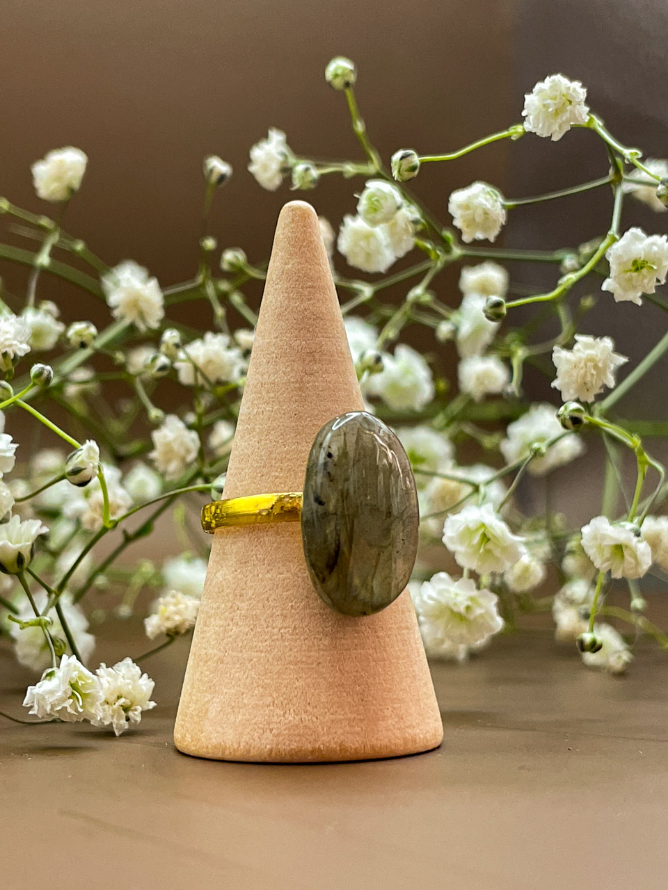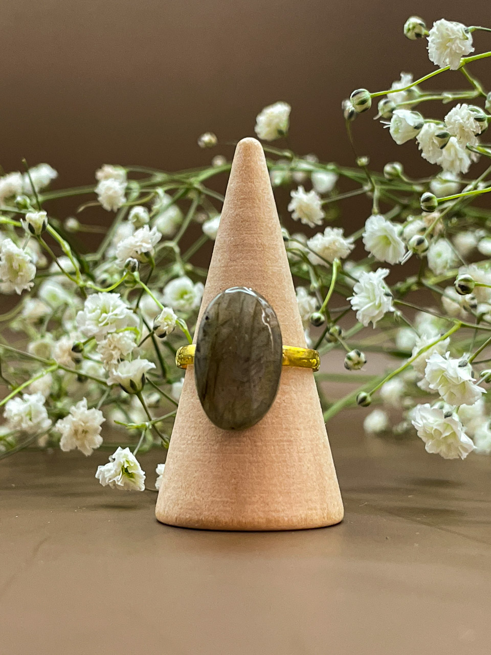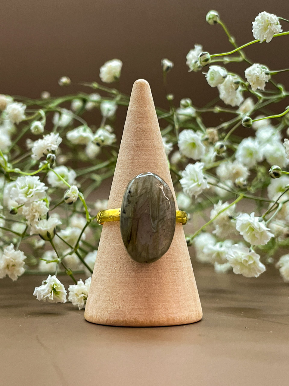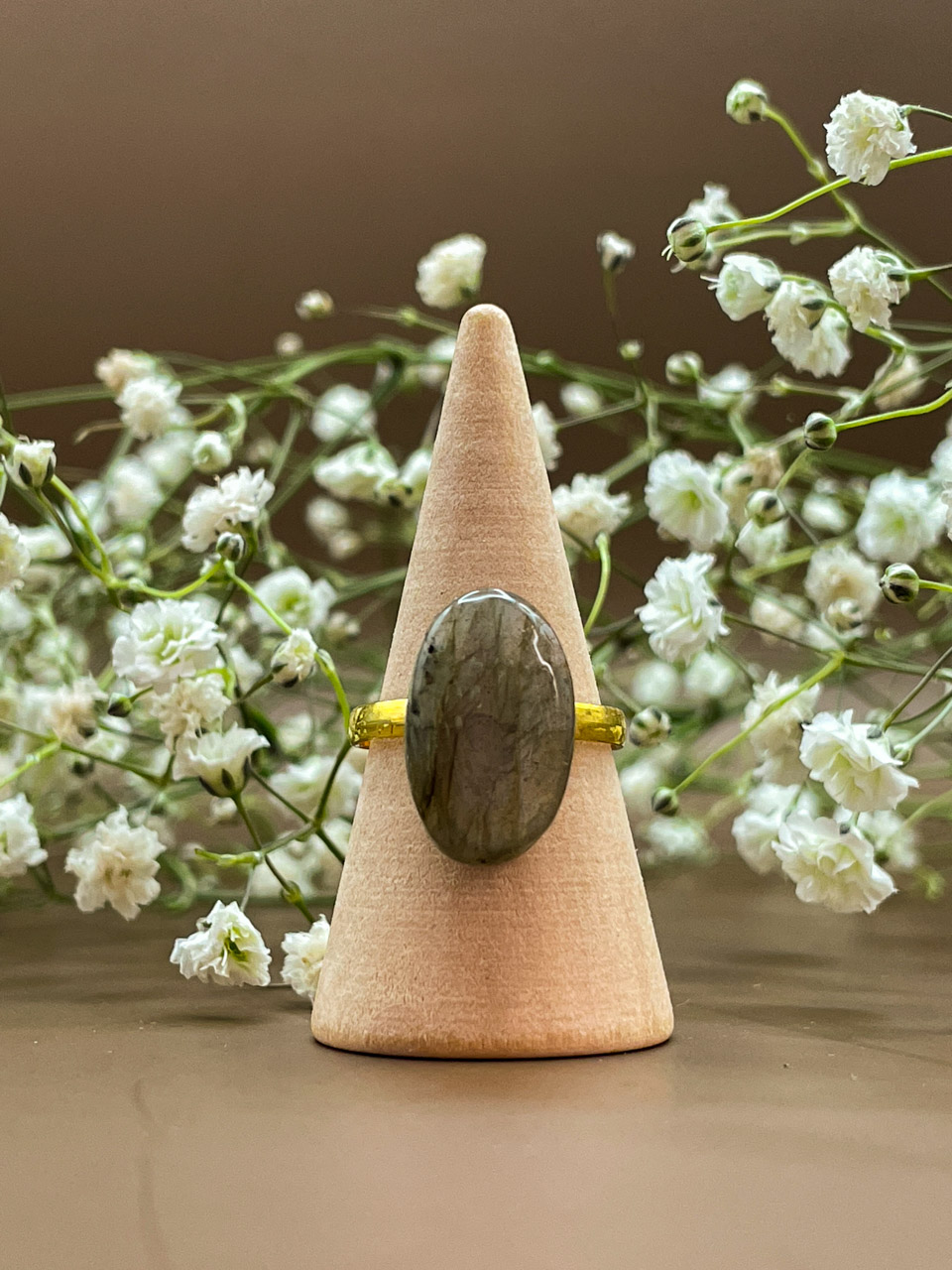 Nastavitelný prsten. Minerál je obalený v pryskyřici, aby neztrácel svou barvu.