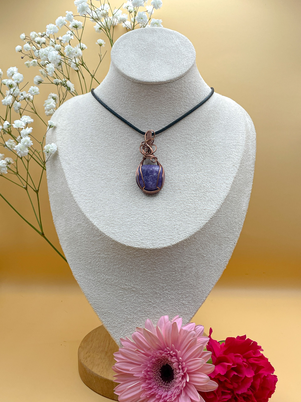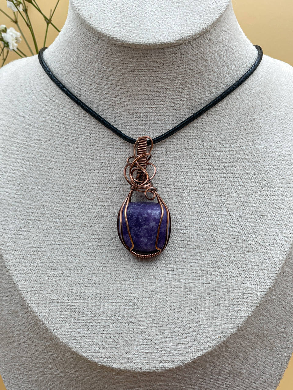 Velikost kamene včetně drátku: 2,5x5,4x1,2 cm. Přívěsek bude na voskované černé šňůrce.