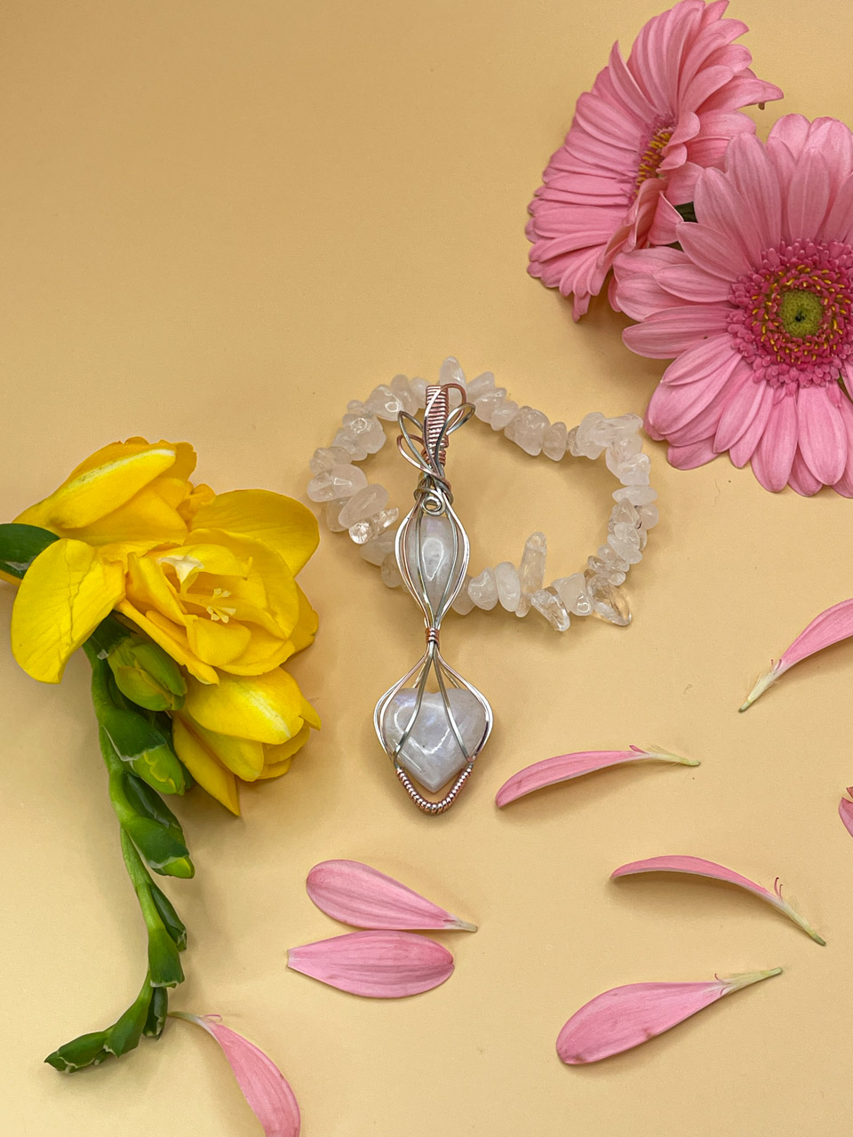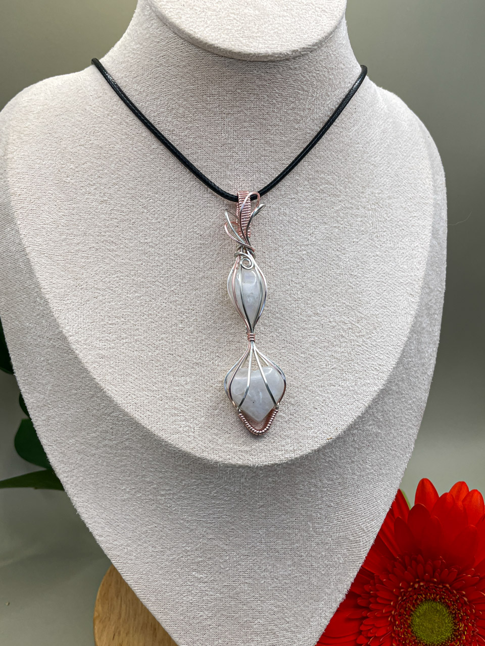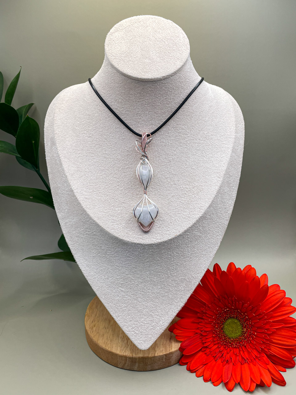 Velikost kamene včetně drátku: 2,1x8,4x1 cm. Přívěsek bude na voskované černé šňůrce. Náramek není součástí, jde pouze o ukázku možné kombinace.