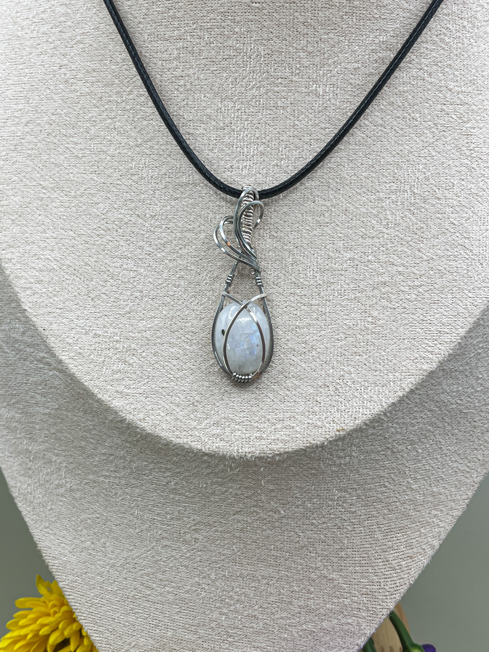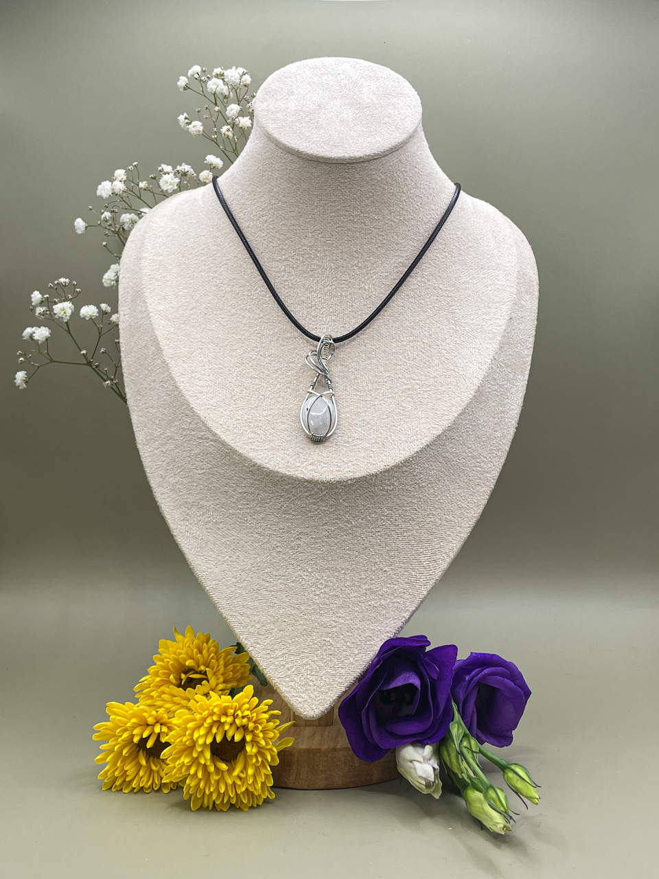 Velikost kamene včetně drátku: 1,4x4,7x0,7 cm. Přívěsek bude na voskované černé šňůrce.