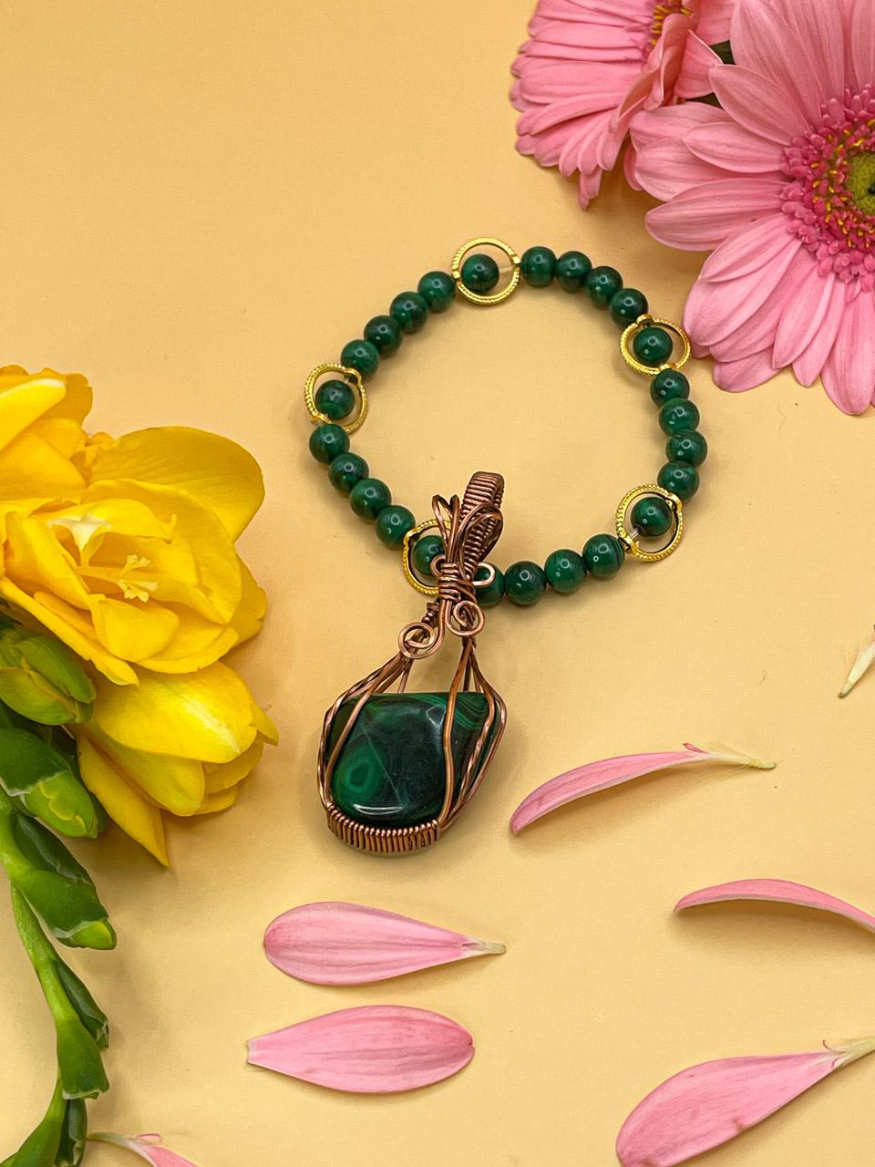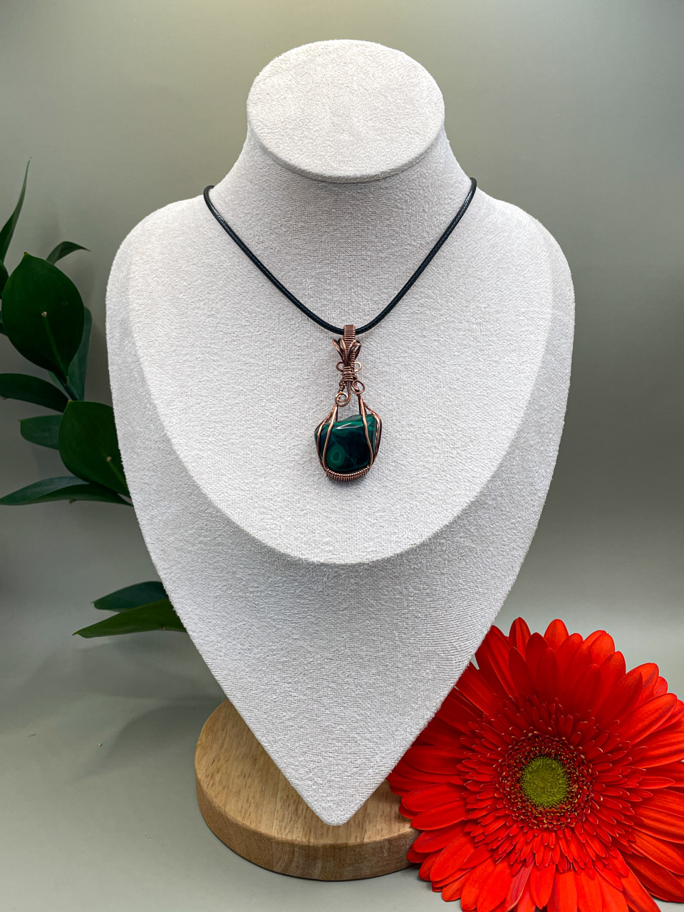 Velikost kamene, včetně drátku: 5,5x2,5x1,5 cm. Přívěsek bude na voskované černé šňůrce. Náramek není součástí, jde pouze o ukázku možné kombinace.
