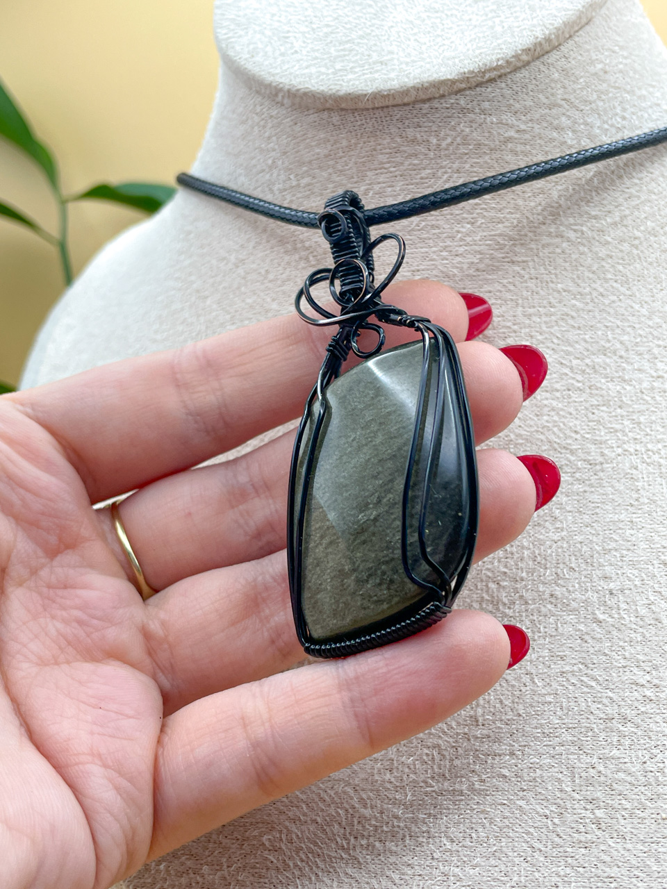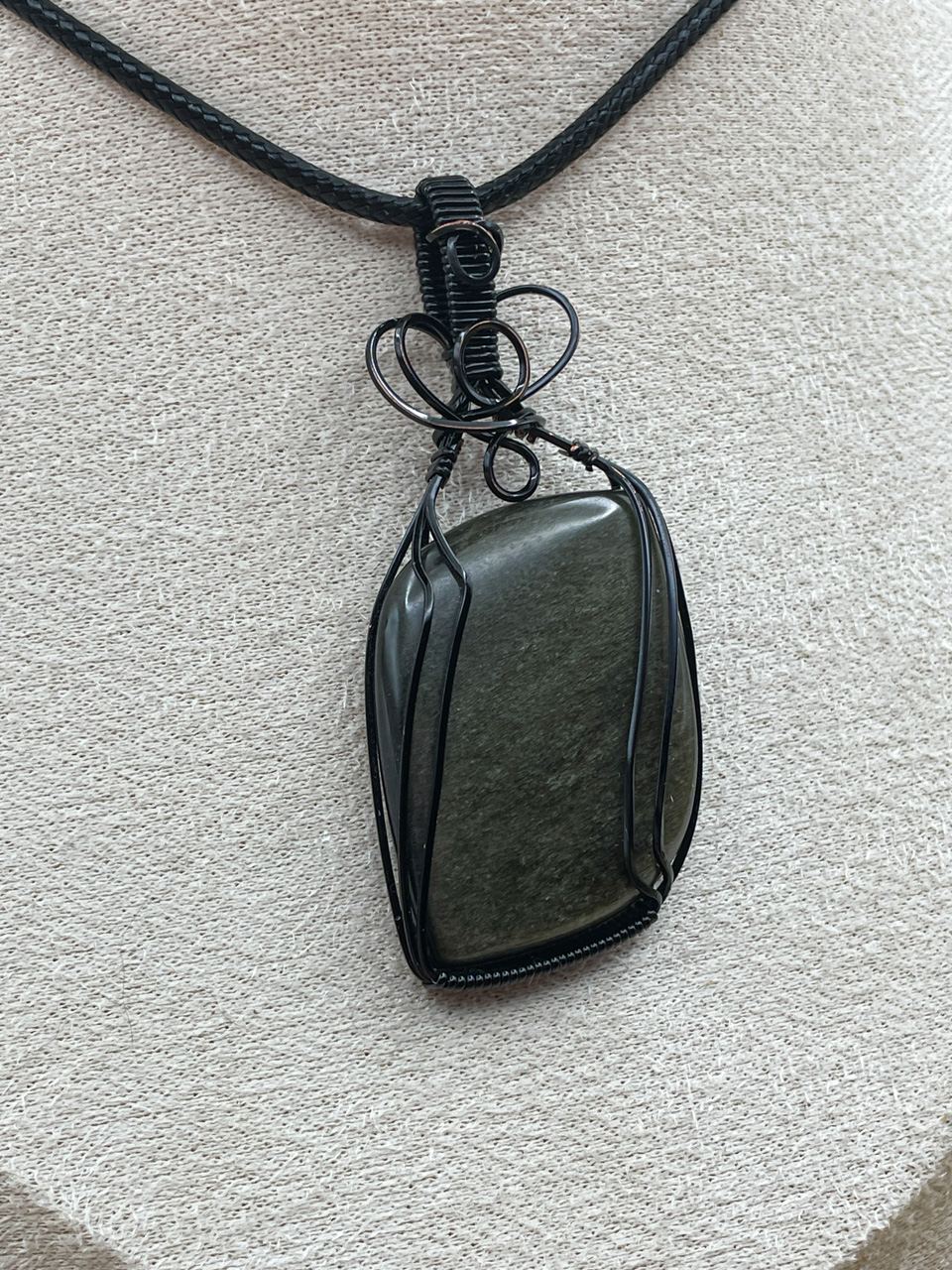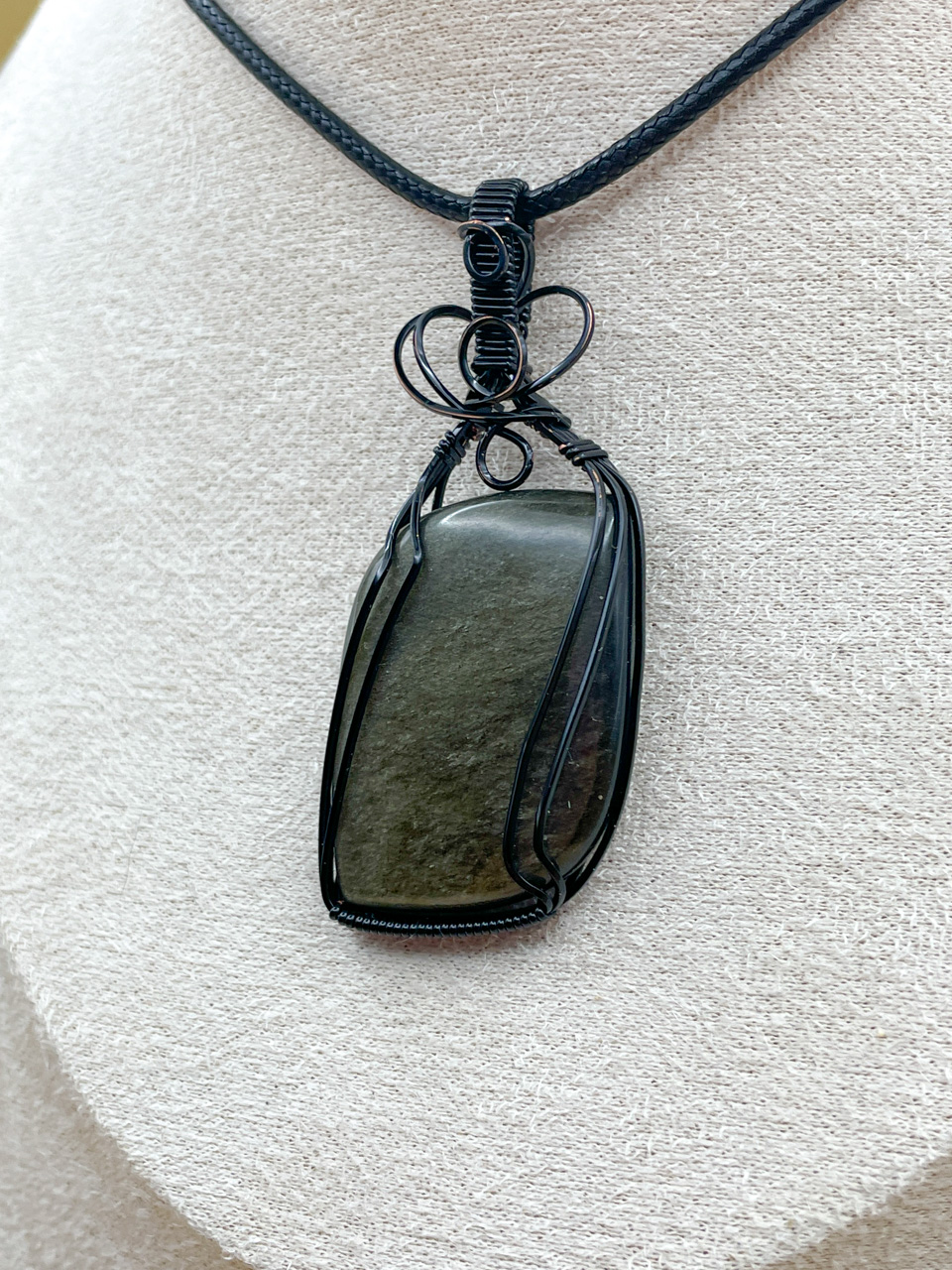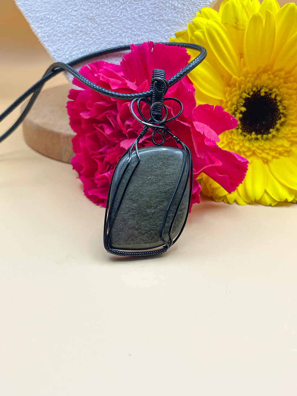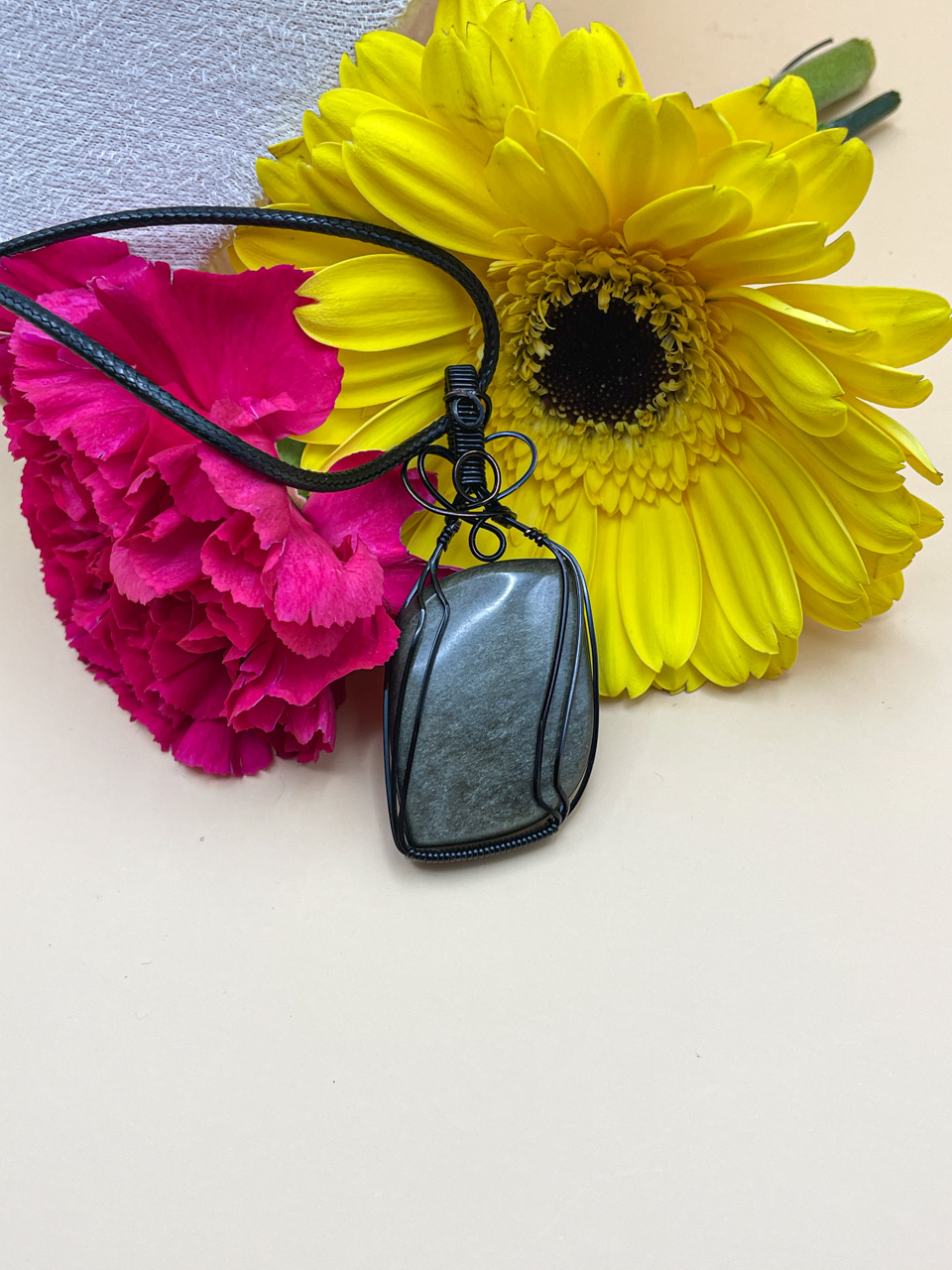 Velikost kamene včetně drátku: 2,7x6,8x0,8 cm. Přívěsek bude na voskované černé šňůrce.