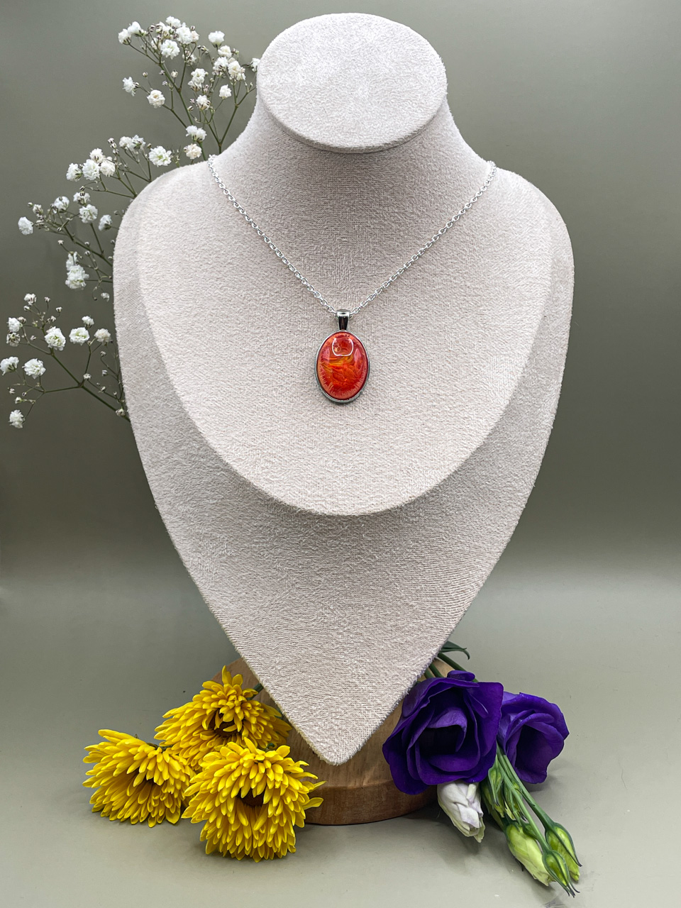 Řetízek s přívěskem z pryskyřice.