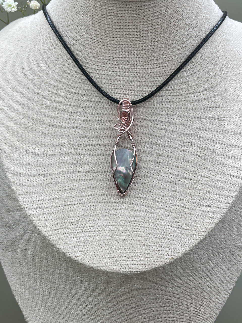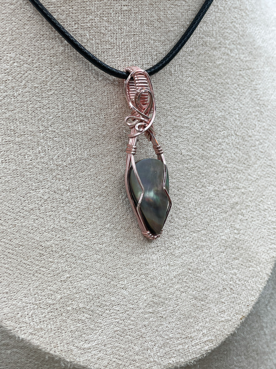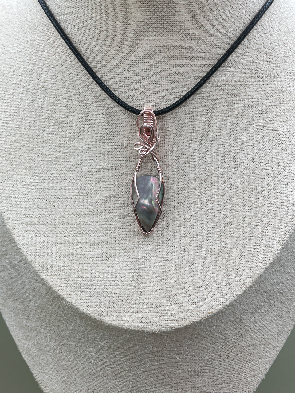 Velikost kamene včetně drátku: 1,5x5,2x0,7 cm. Přívěsek bude na voskované černé šňůrce.