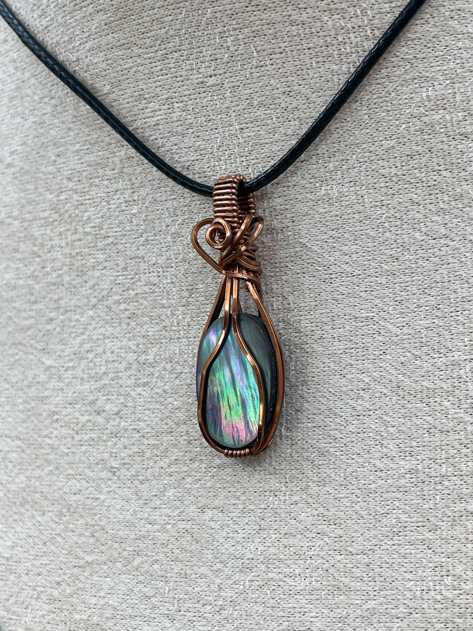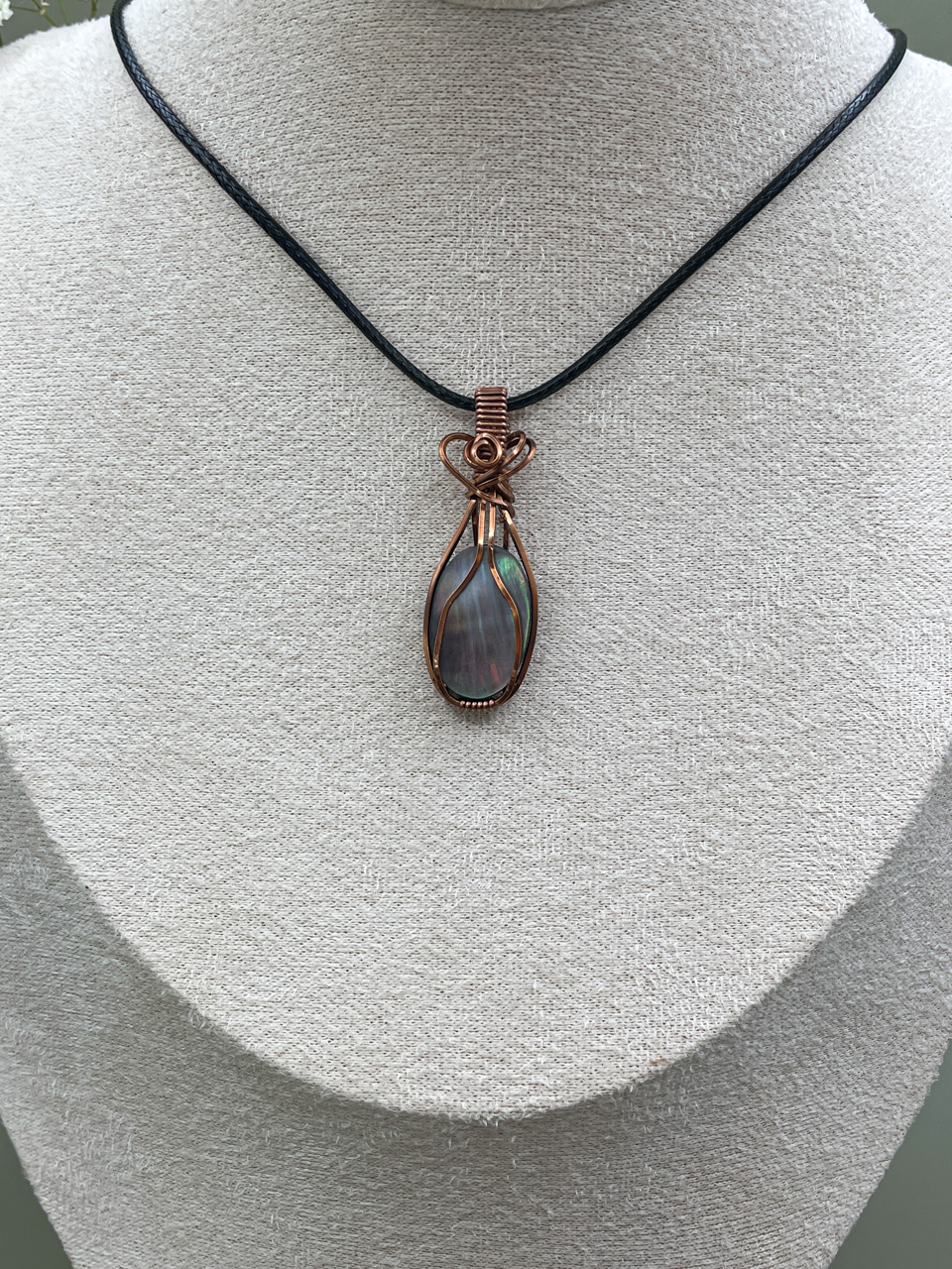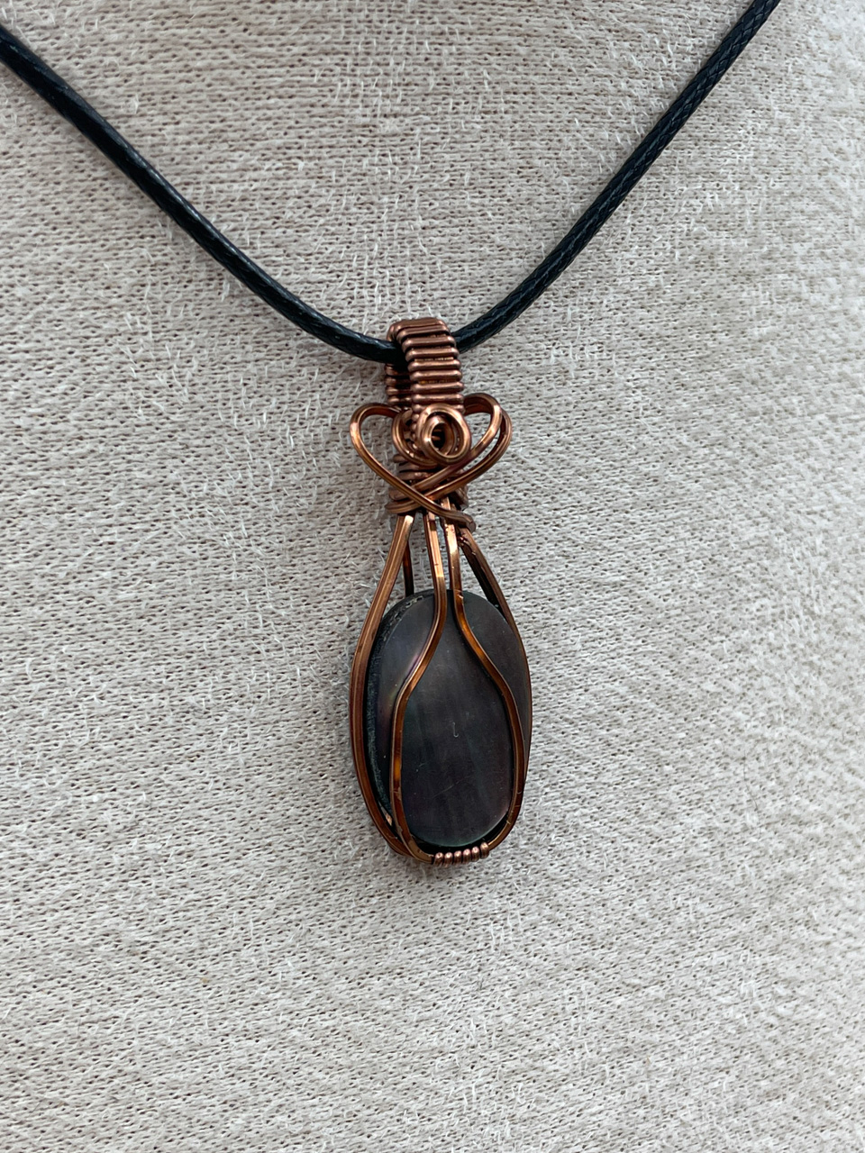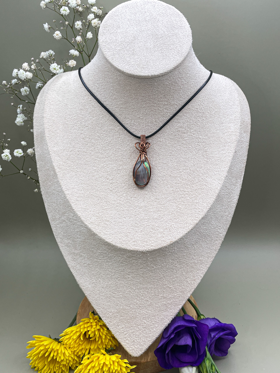 Velikost kamene včetně drátku: 1,5x4,2x0,6 cm. Přívěsek bude na voskované černé šňůrce.