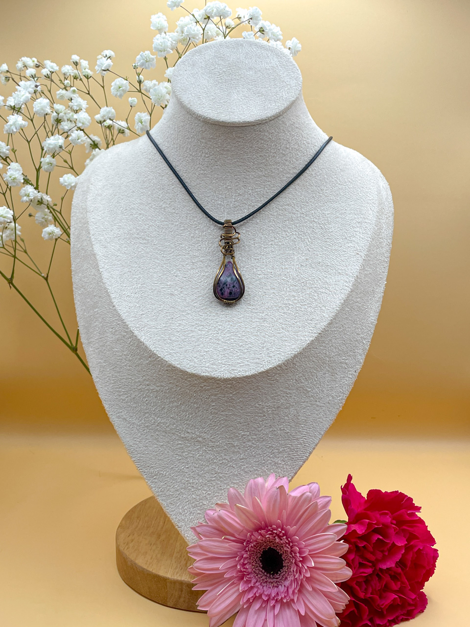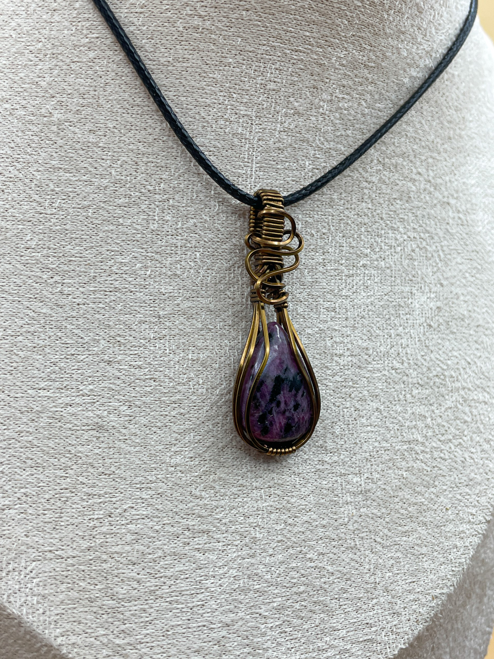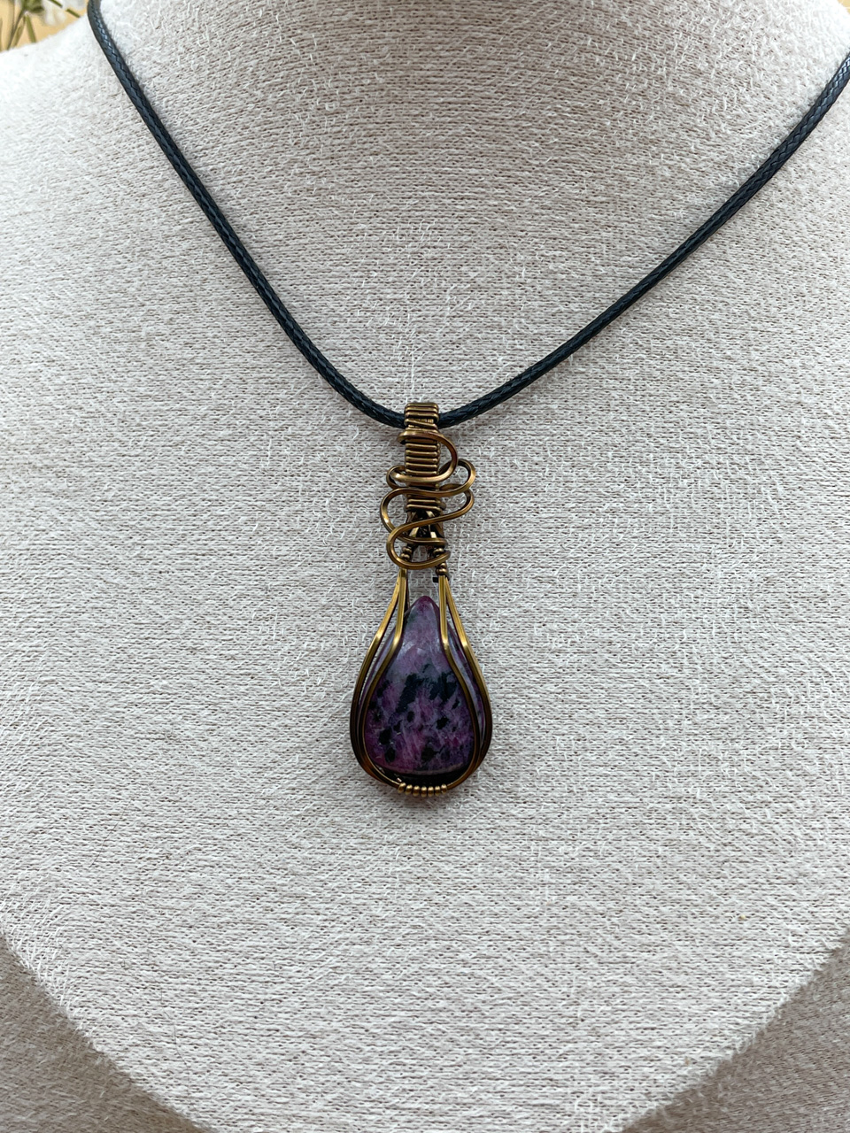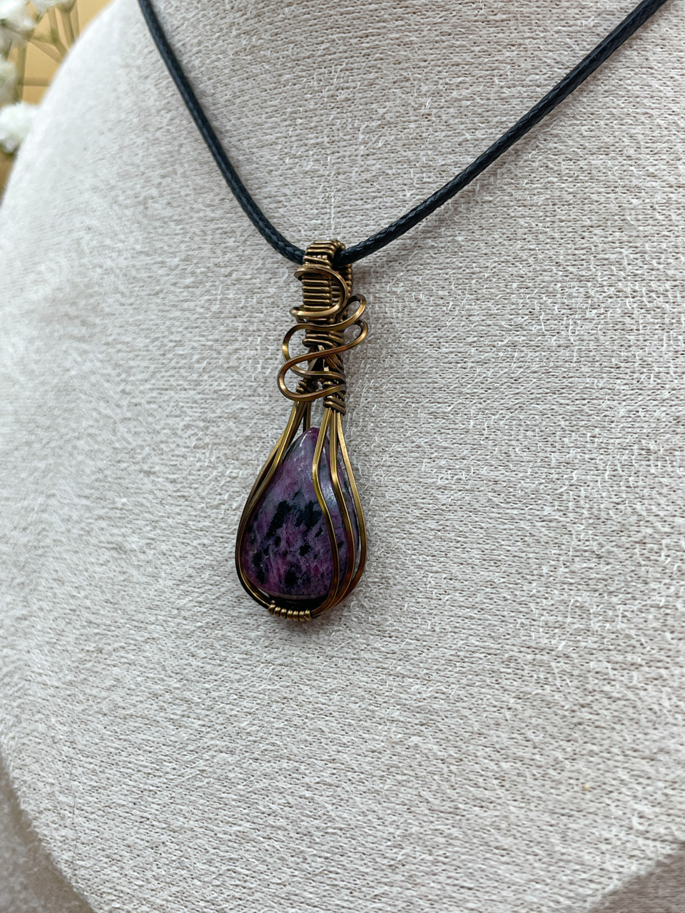 Velikost kamene včetně drátku: 1,6x34,6x0,6 cm. Přívěsek bude na voskované černé šňůrce.
