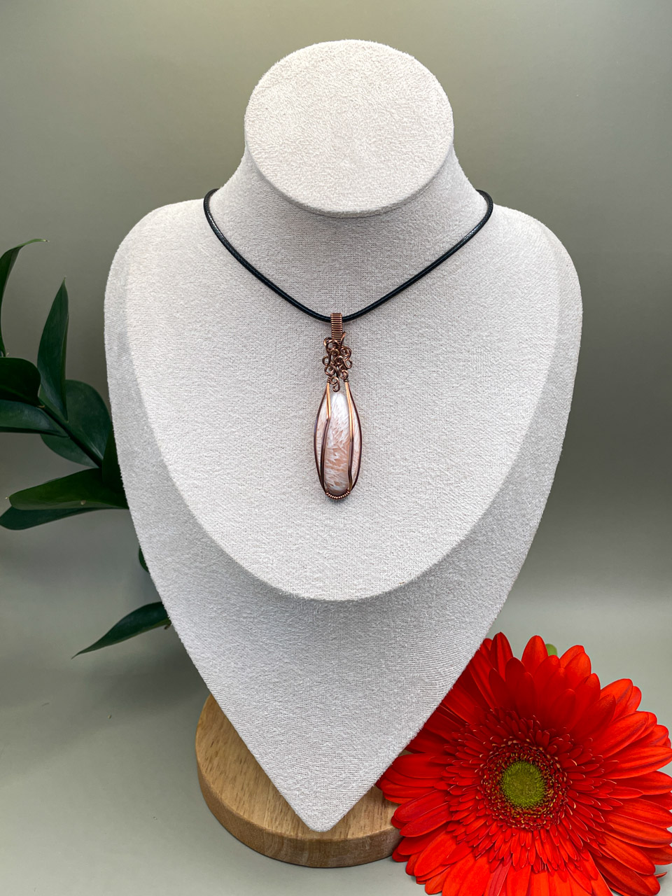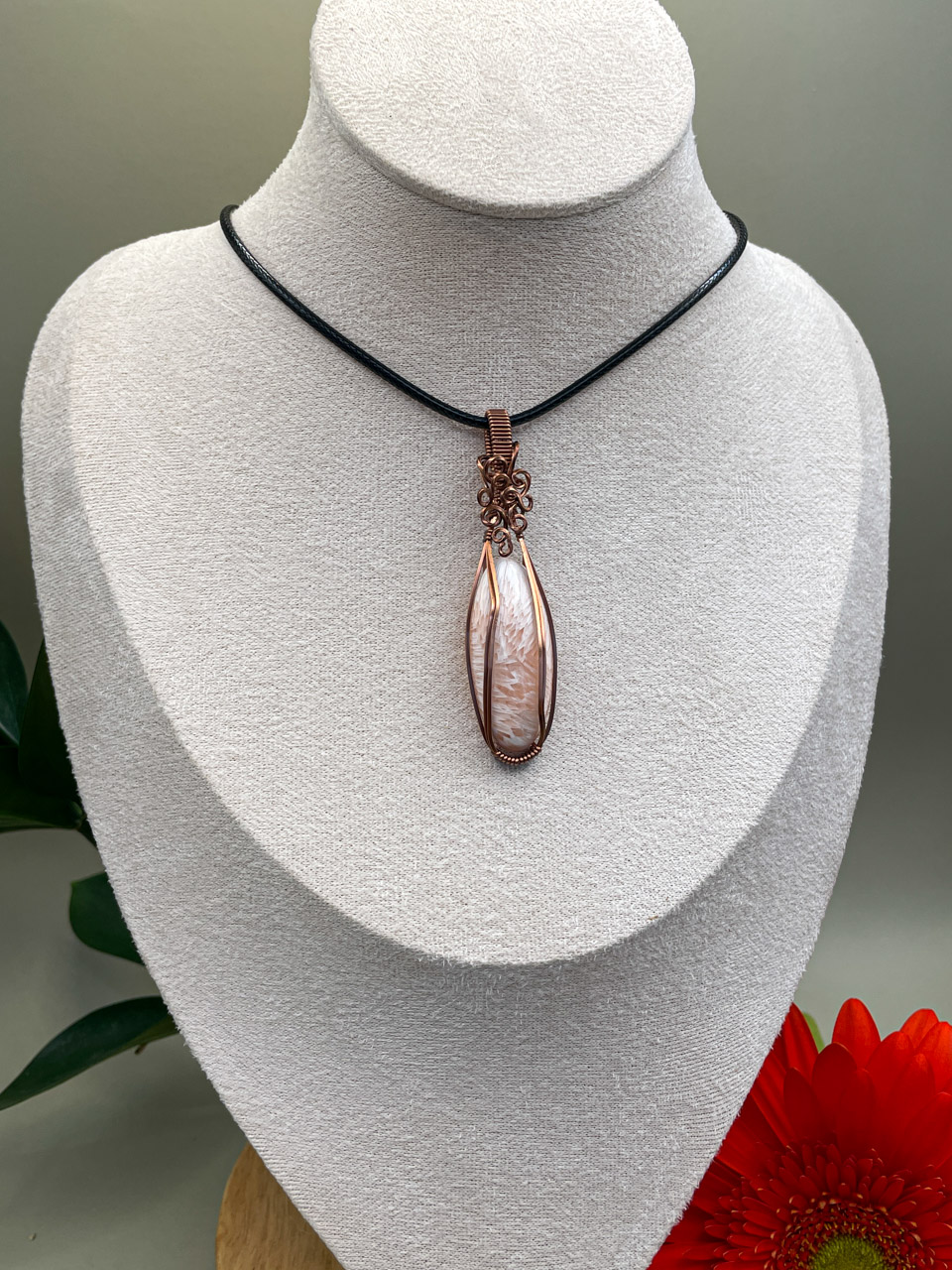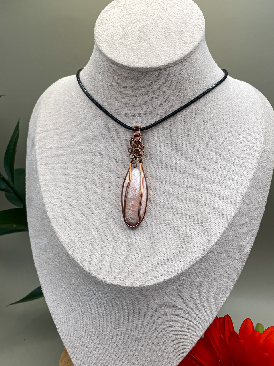 Velikost kamene včetně drátku: 1,8x6,6x0,7 cm. Přívěsek bude na voskované černé šňůrce.