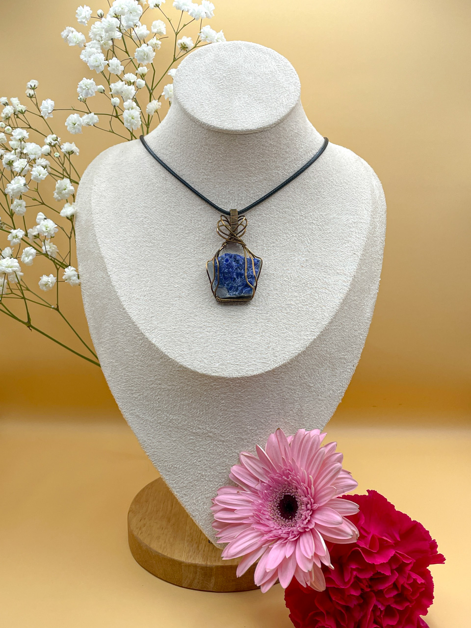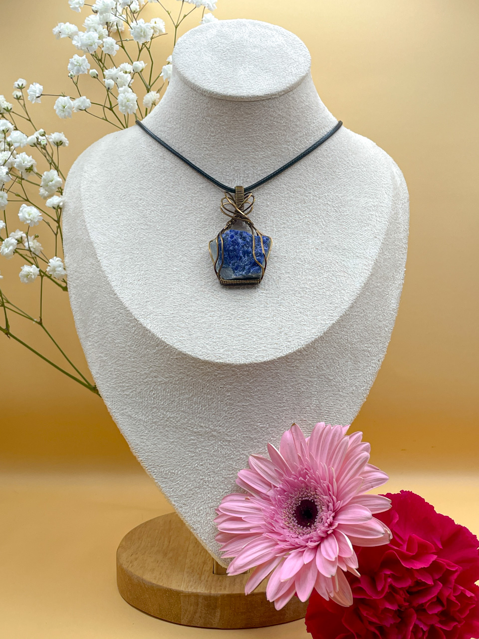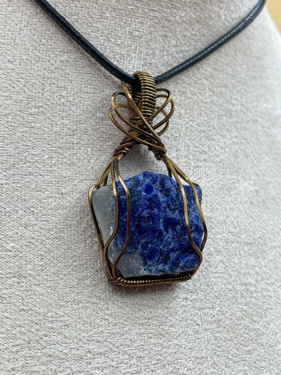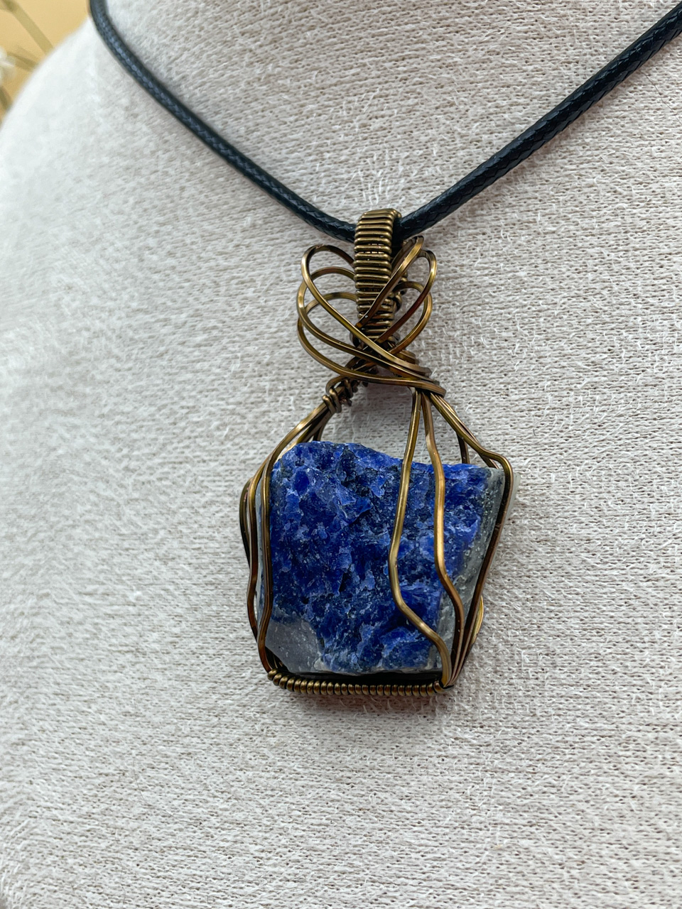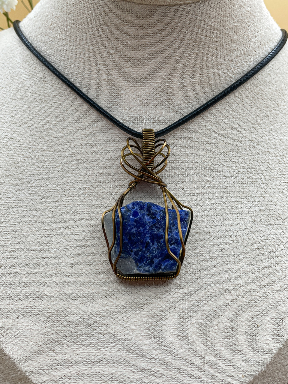 Velikost kamene včetně drátku: 3,1x5,2x1,3 cm. Přívěsek bude na voskované černé šňůrce.