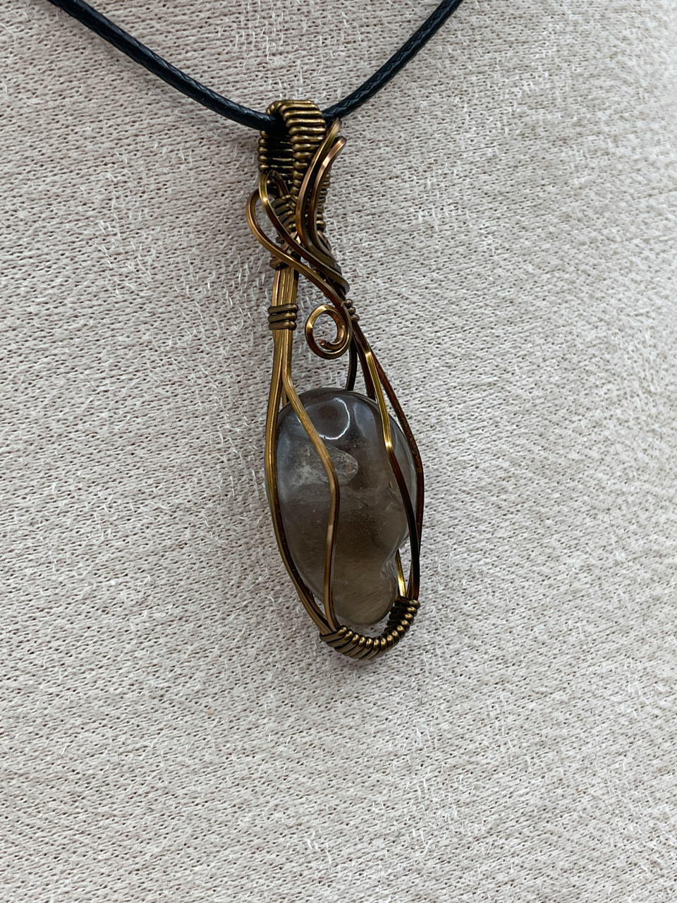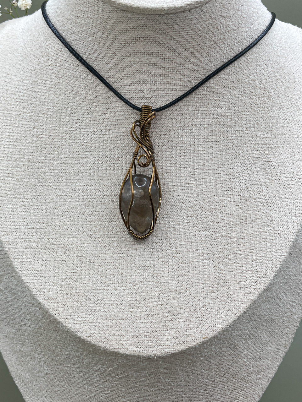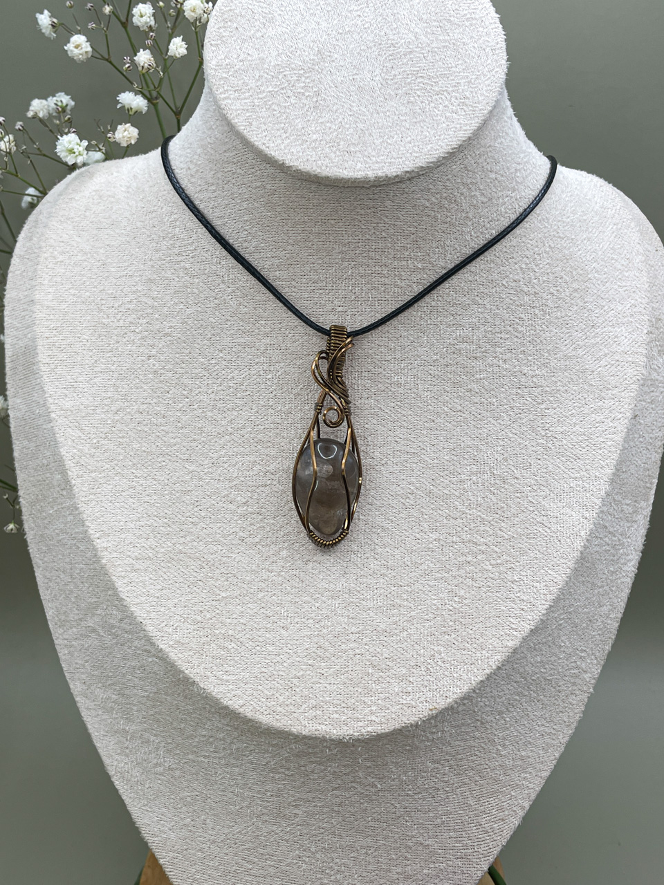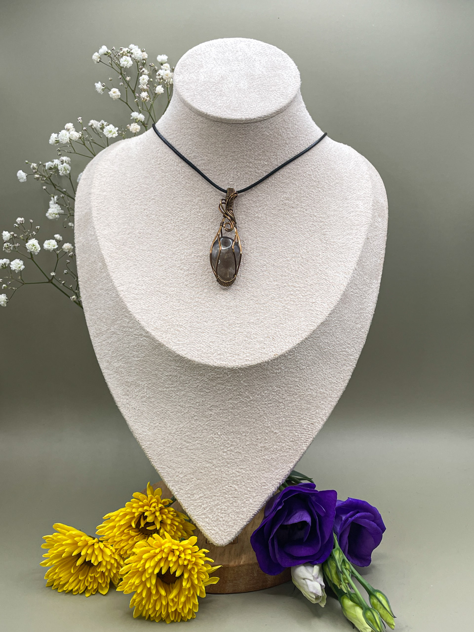 Velikost kamene včetně drátku: 1,8x5,6x1,2 cm. Přívěsek bude na voskované černé šňůrce.